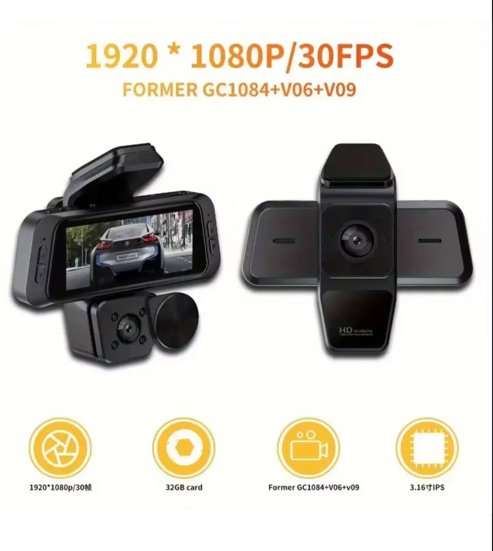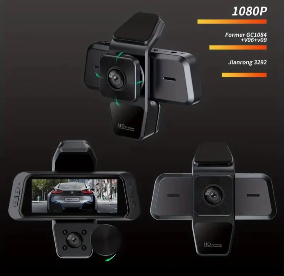 1080P HD 360° Multi-Function Car Black Box with IPS Screen 3-Lens Wide Angle Dashcam 1-Year Warranty