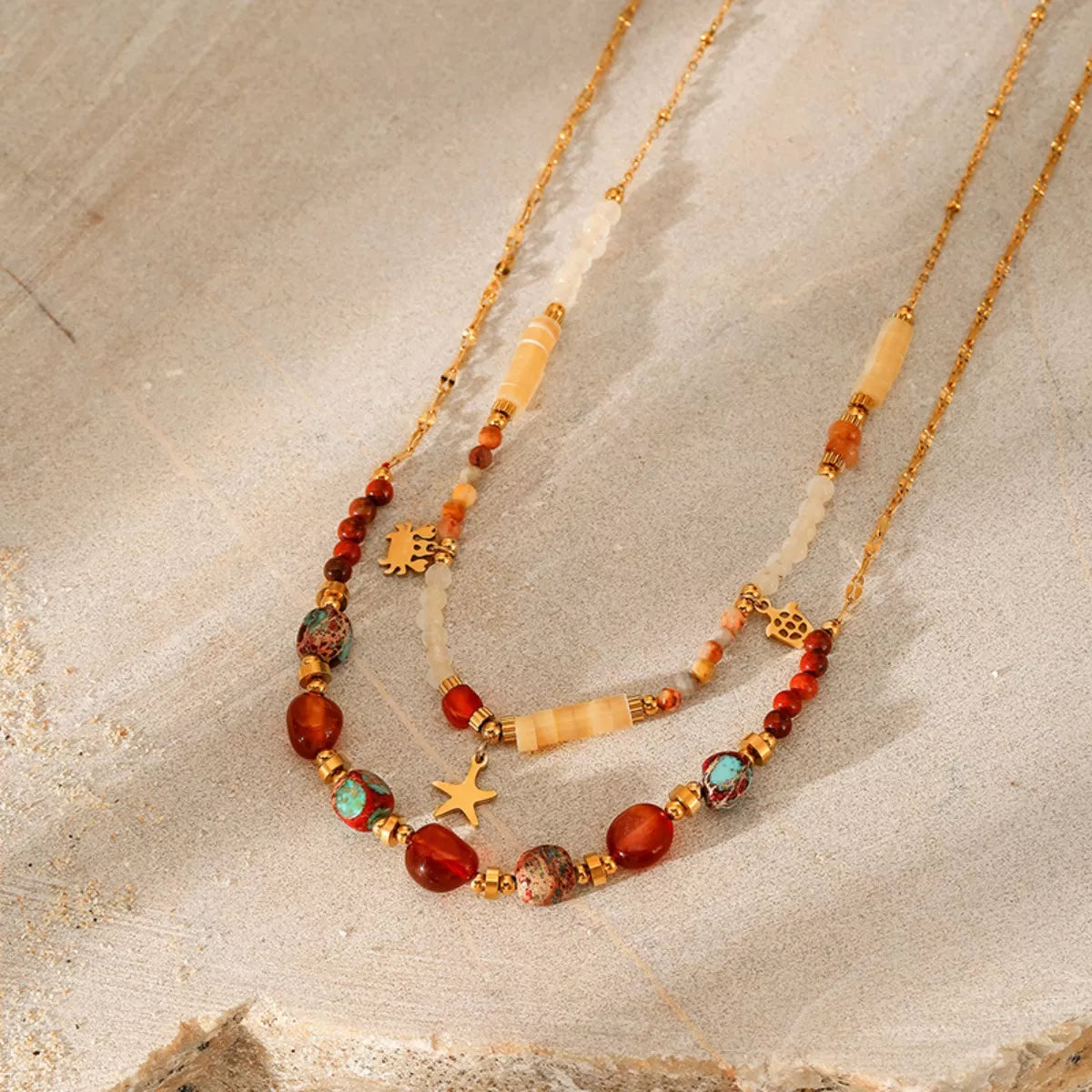 2 Piece 18K Gold-Plated Natural Stone Bead Necklace