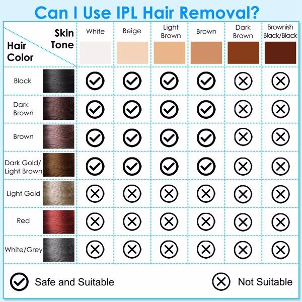 - 1. This laser hair removal is not applicable for dark brown/black skin.