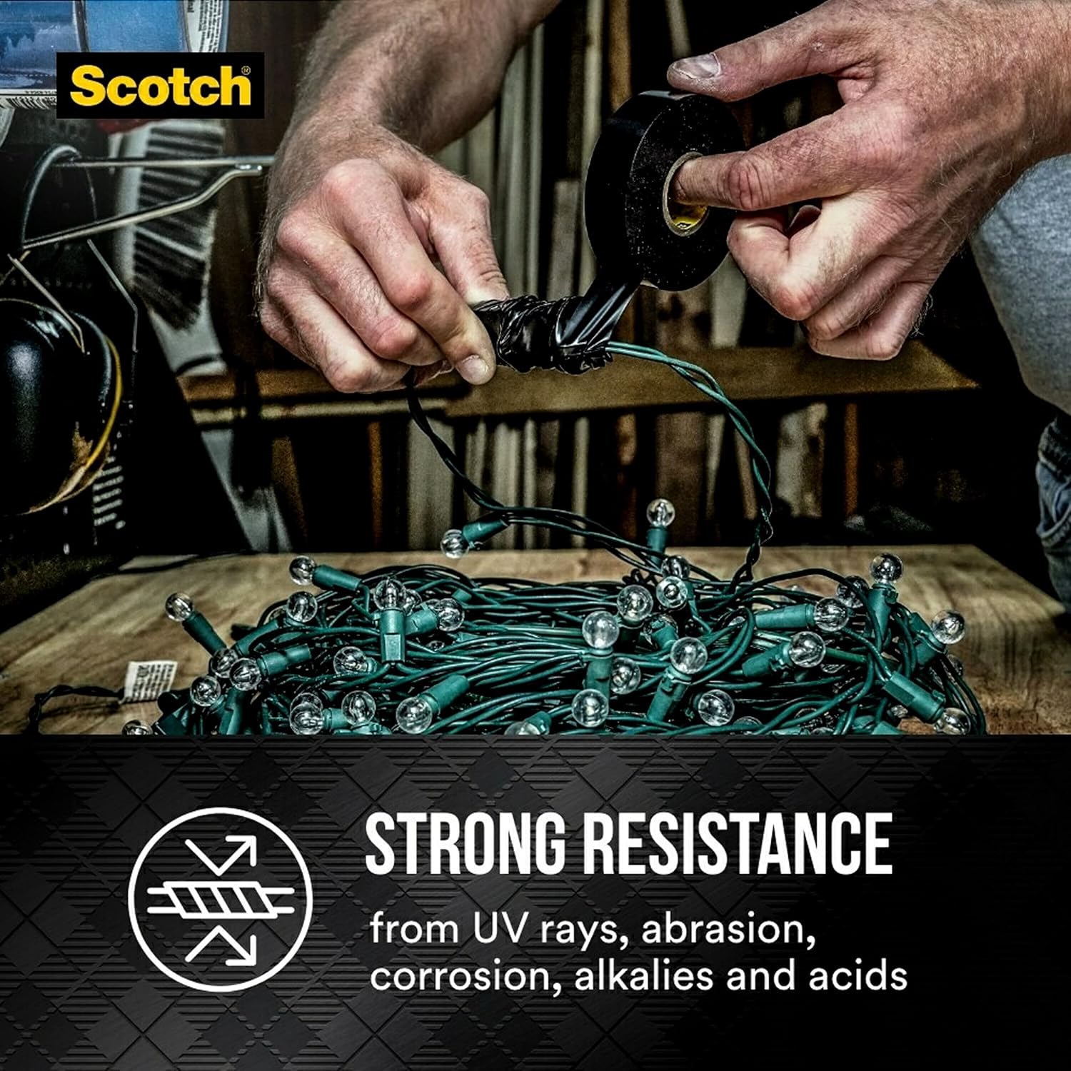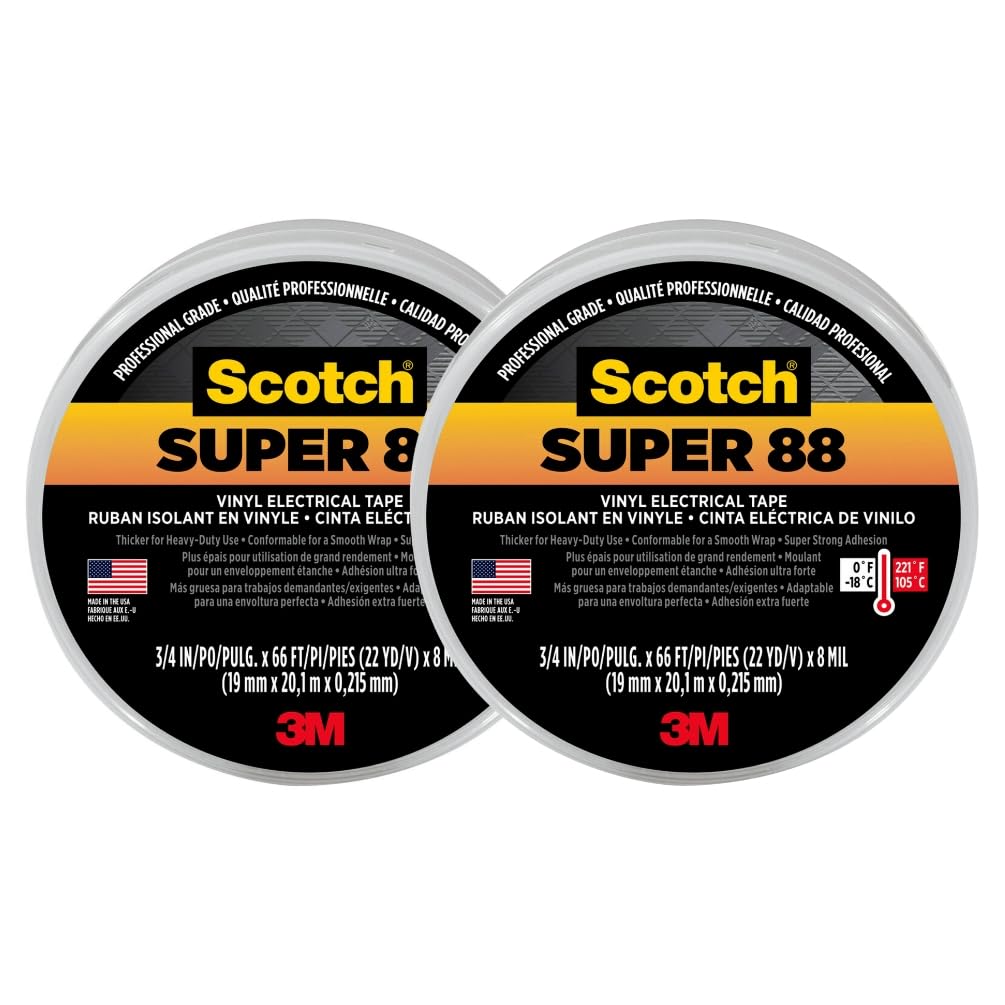 3M Scotch Super 88 Vinyl Electrical Tape, -18 to 105 Degree C, 10000 mV Dielectric Strength, 66' Length x 3/4" Width, Black, 2 PACK