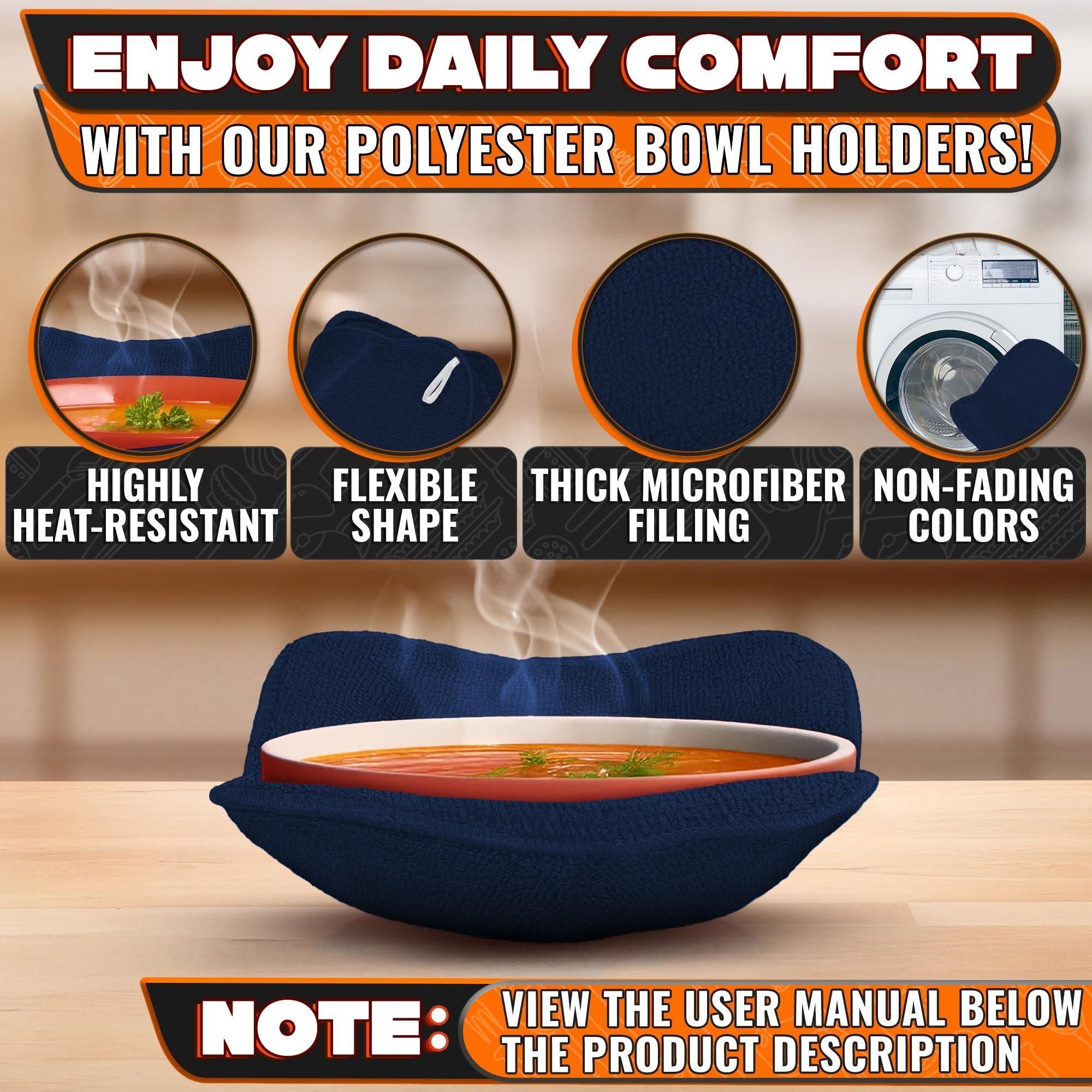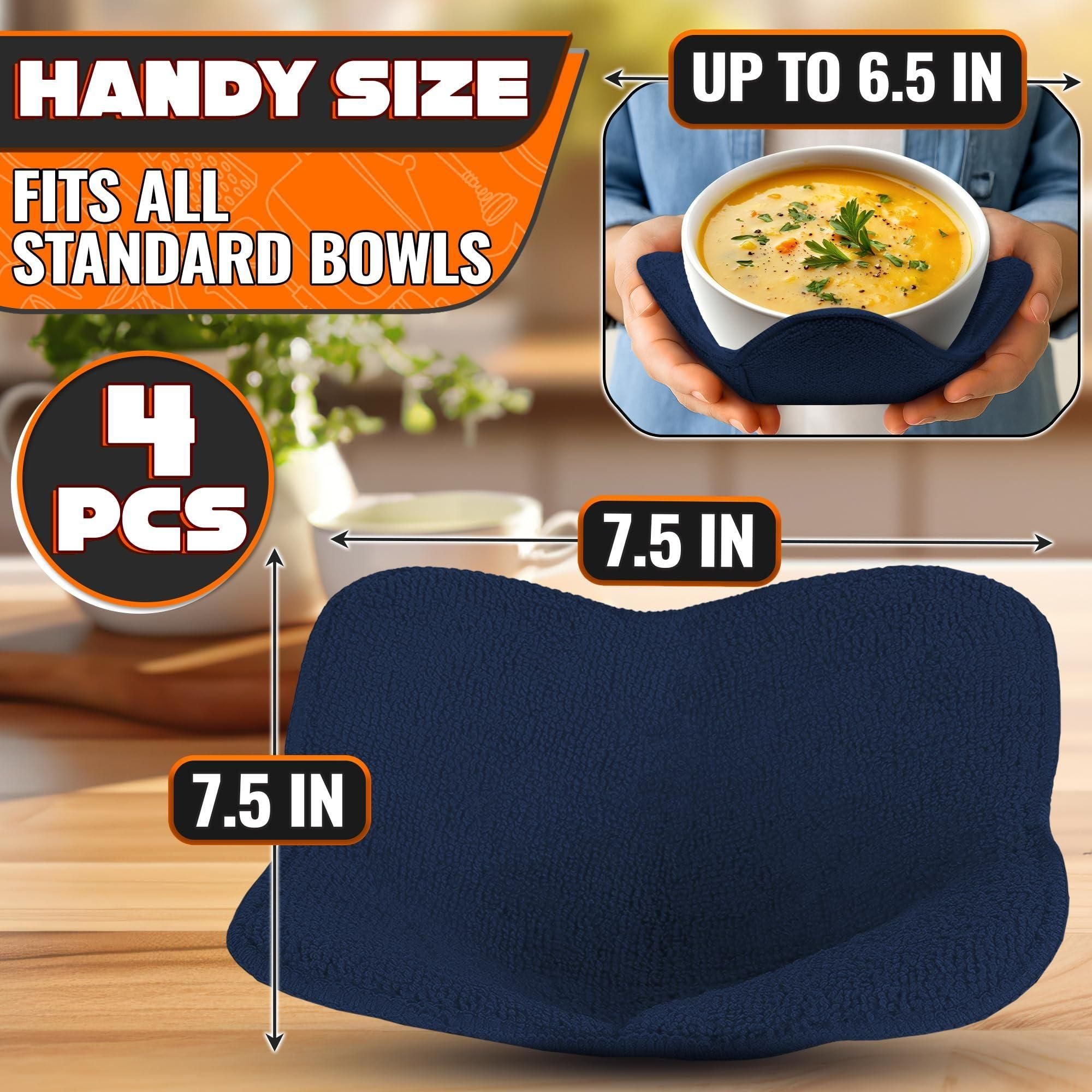 4 Pcs Microwave Bowl Cozy Holders Deep Navy Blue Microwave Bowl Holders for Hot Food Protect Hands from Hot Dishes Soft & Heat Resistant Fabric for Safe Heating & Convenient Use in the Kitchen