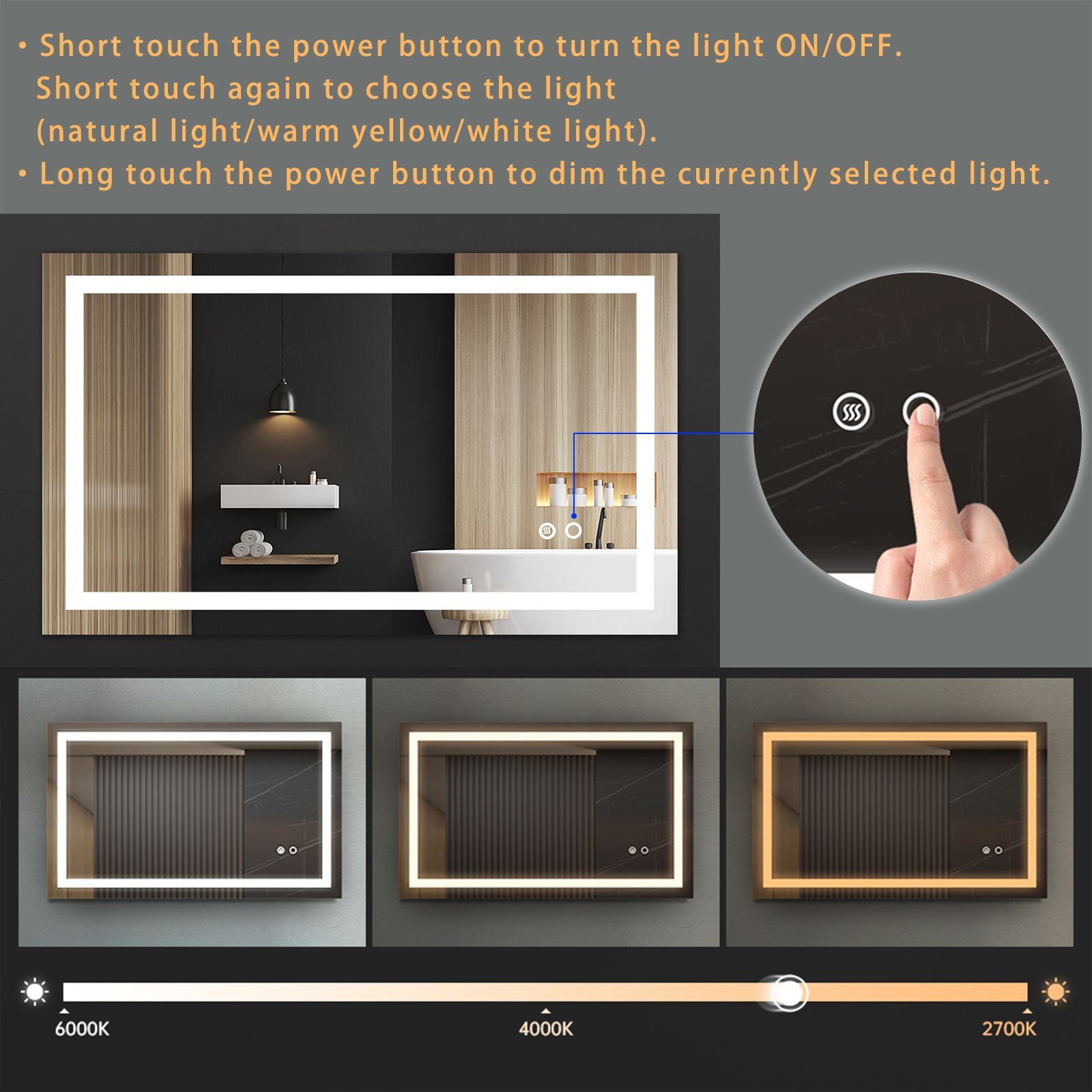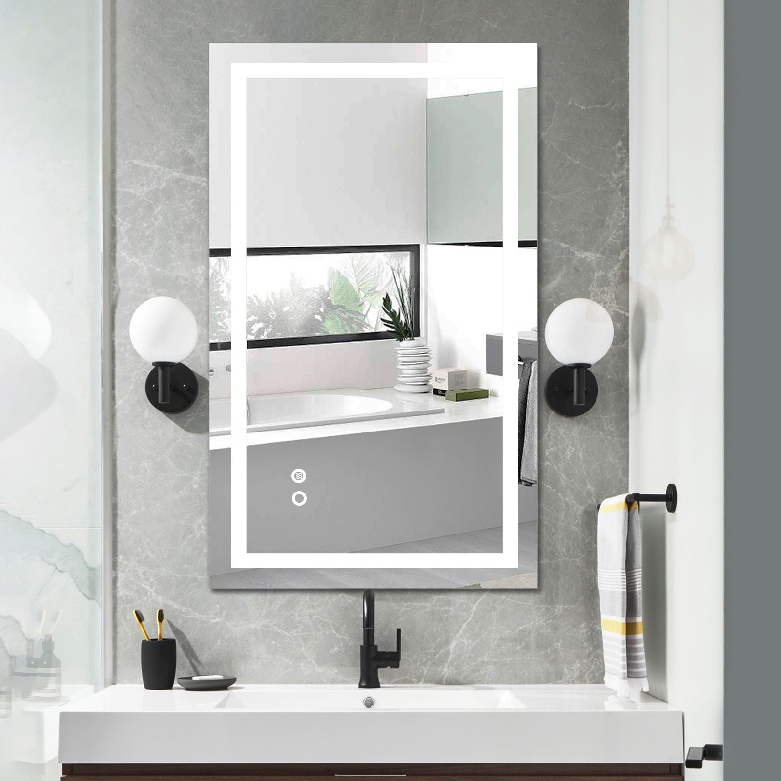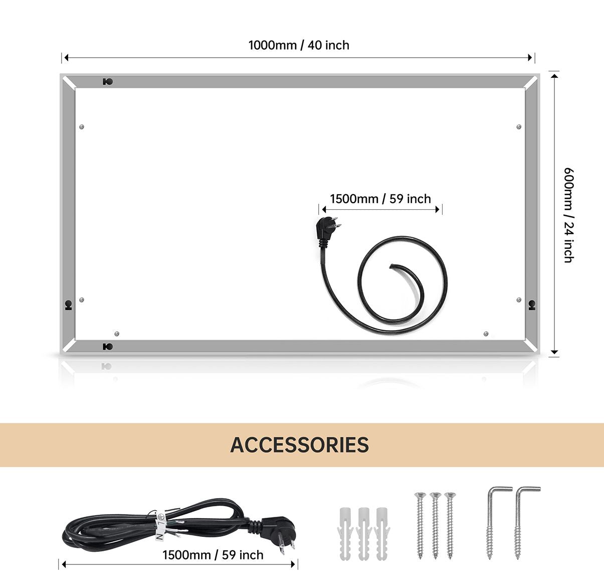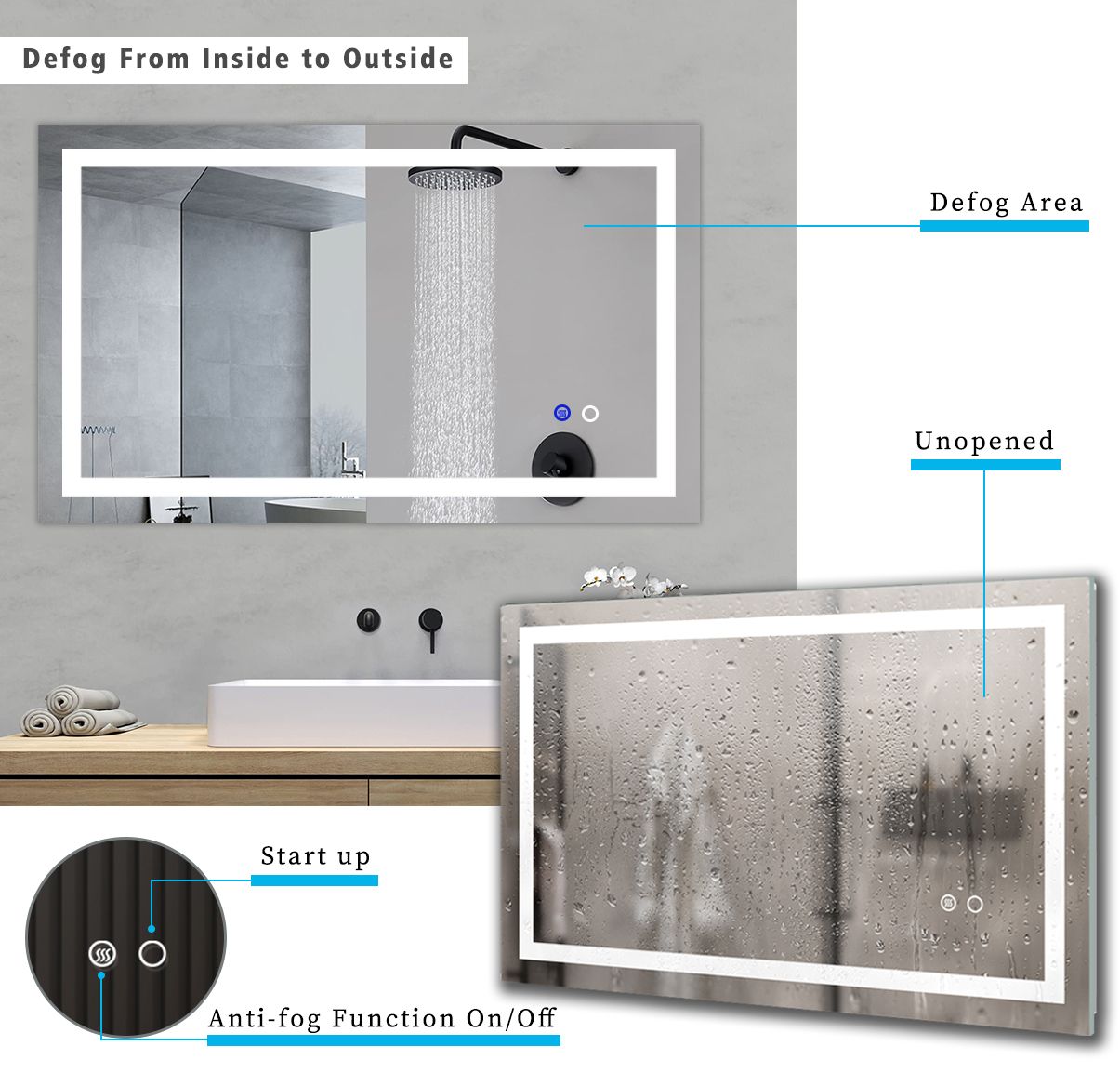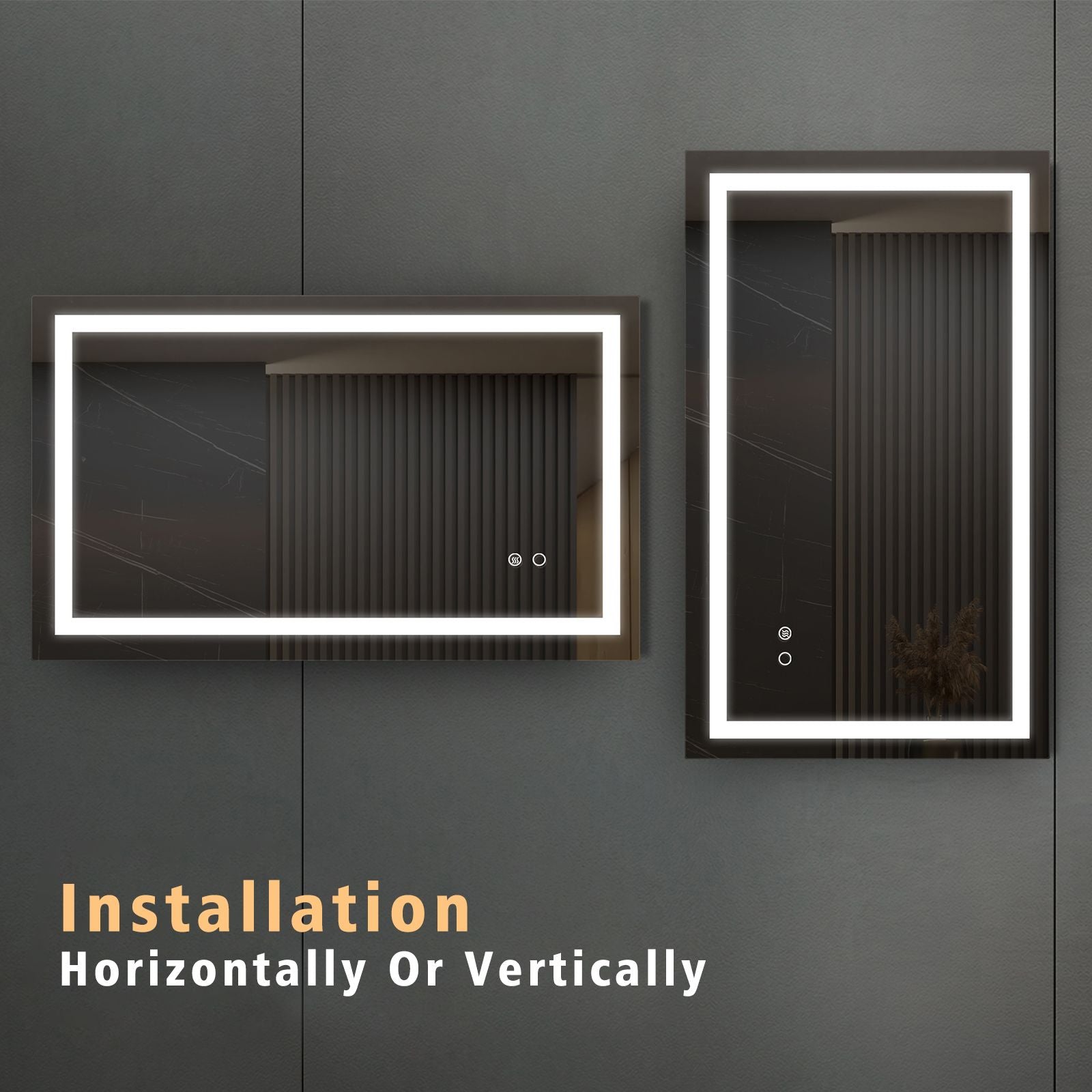 40*24 LED Lighted Bathroom Wall Mounted Mirror with High Lumen+Anti-Fog Separately Control+Dimmer Function