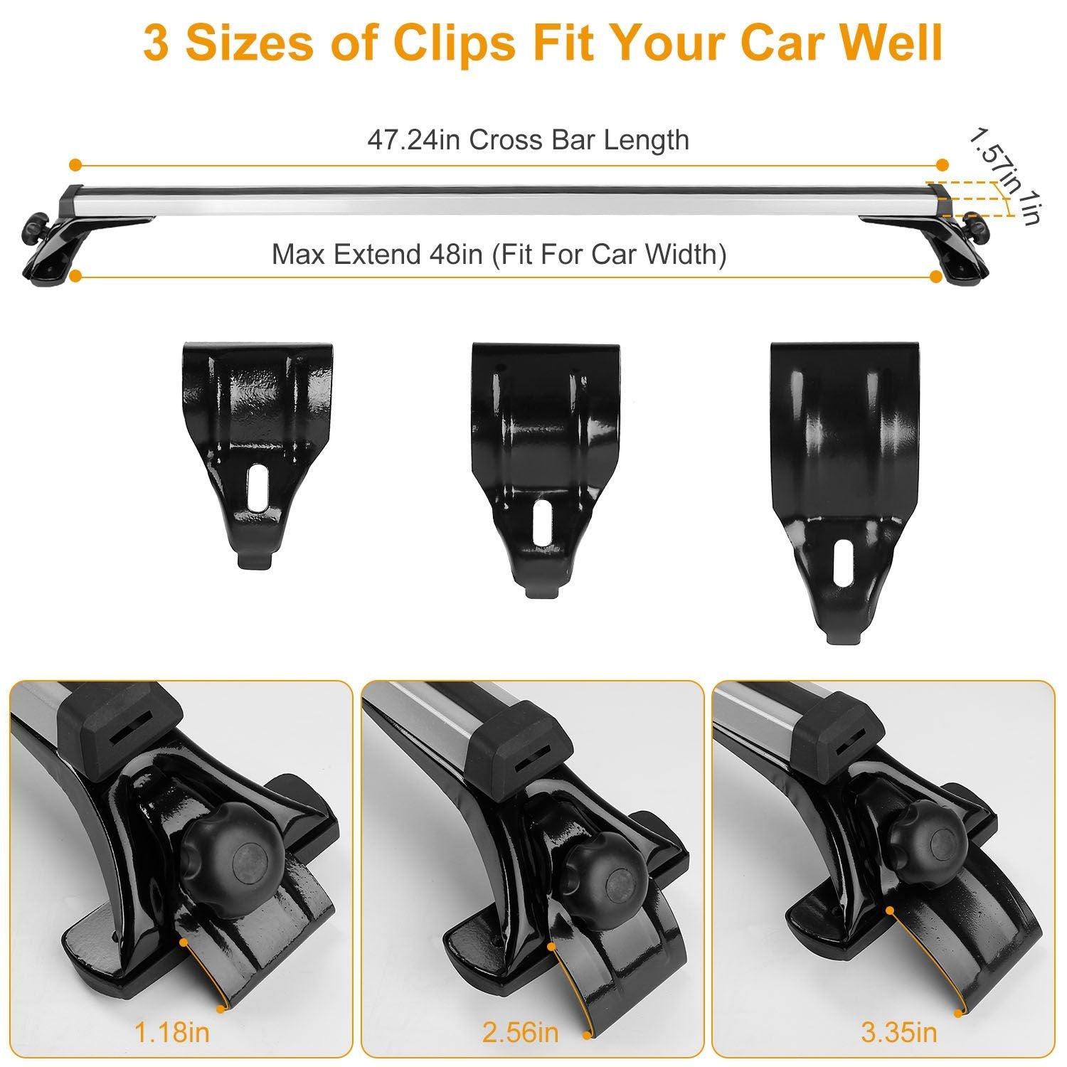 Fit For Most Bare Roof: Universal fit most vehicles with car bare/smooth roof whose width is less than 48in. Don\'t fit any vehicles with raised rails, flush rails, fixed points and factory-installed roof rack. Please check your car before purchasing.