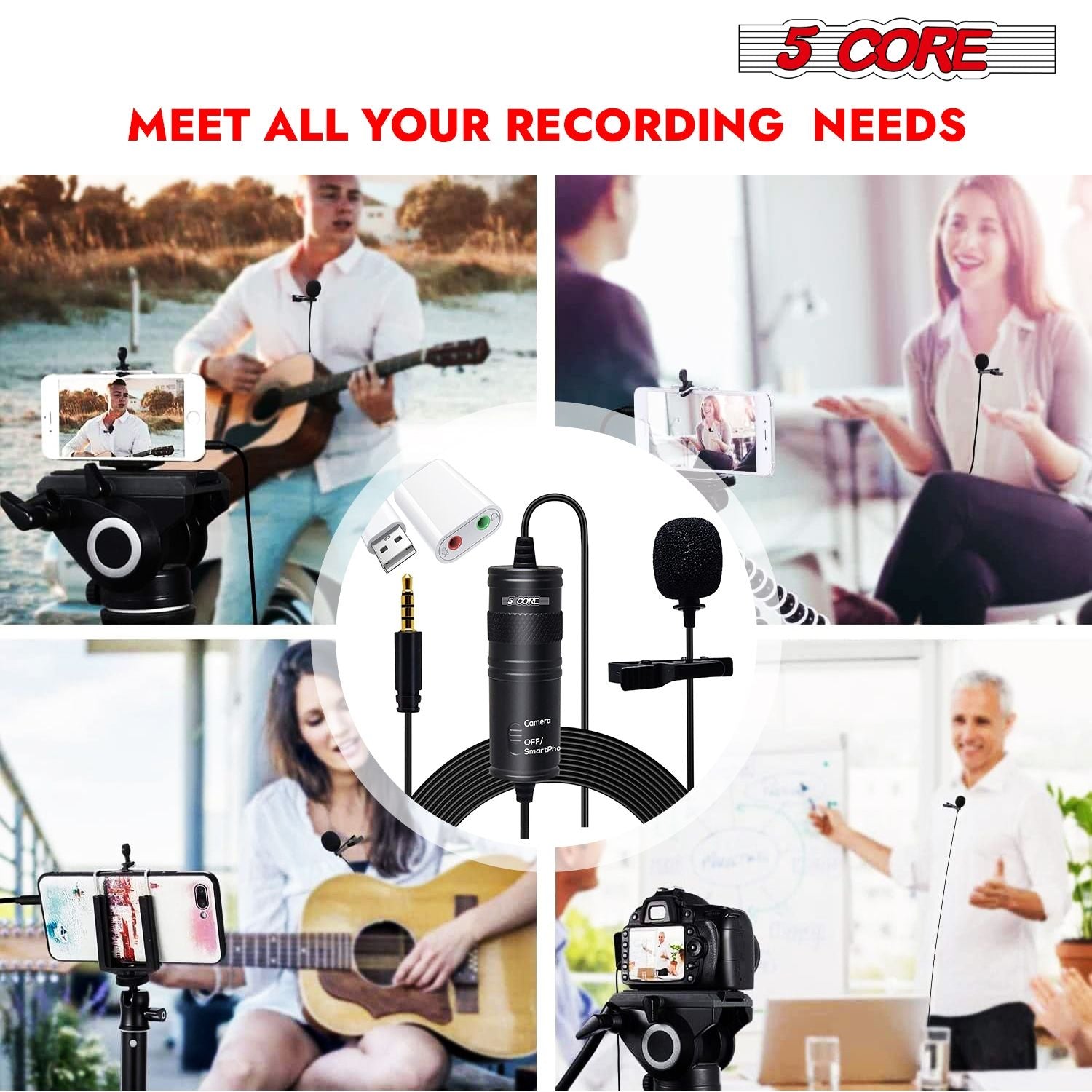 UNIVERSAL COMPATIBILITY - 3.5 jack & 1/4"" adapter let you connect smartphones, cameras, audio recorders, and PC.