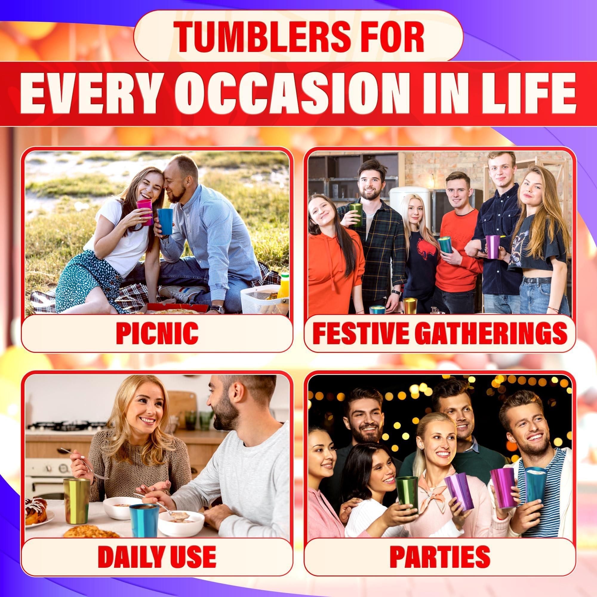 6 Pcs Aluminum Tumblers 15 oz Lightweight Durable and Reusable Metal Cups Vibrant Festive Colors for Hot and Cold Beverages Sturdy Anodized Design for Parties and Outdoor Use Hand Wash Only