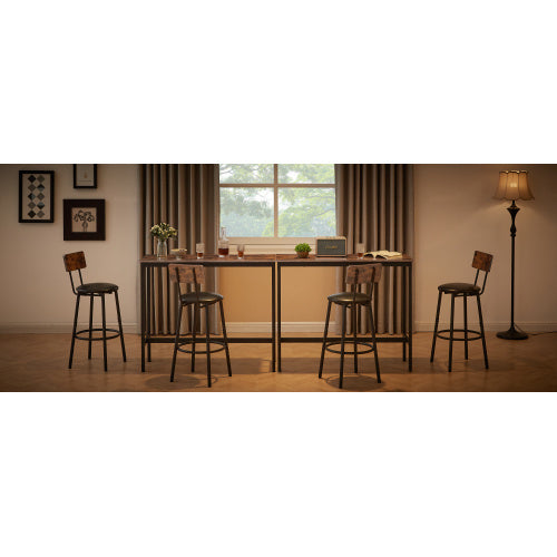 Bar table set with 2 bar stools PU soft seat with backrest, rustic brown, 43.31" L x 15.75" W x 35.43" H.