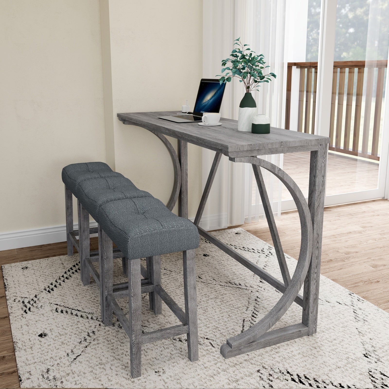 Bar Table Set With Power Outlet, Bar Table And Chairs Set, 4 Piece Dining Table Set, Industrial Brea