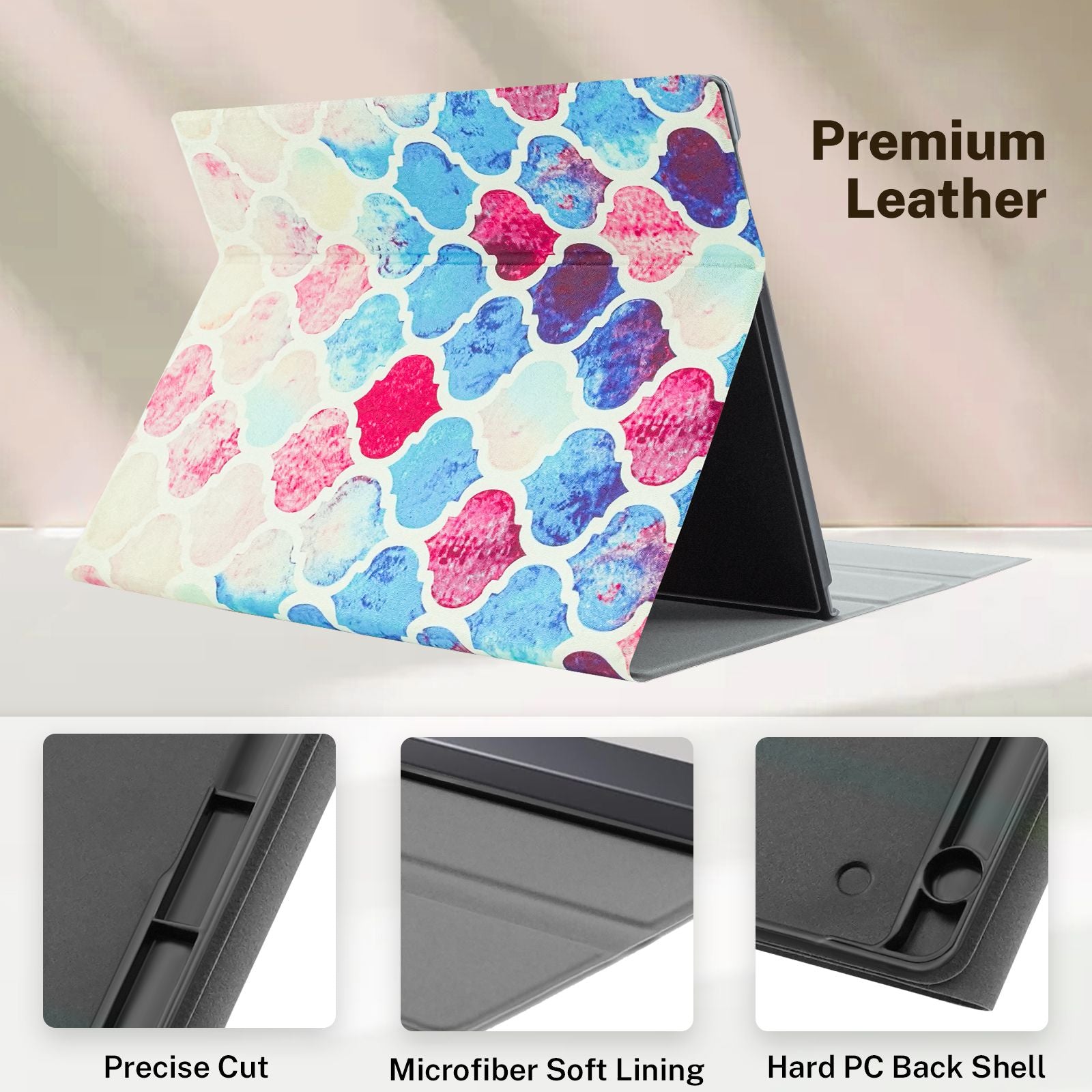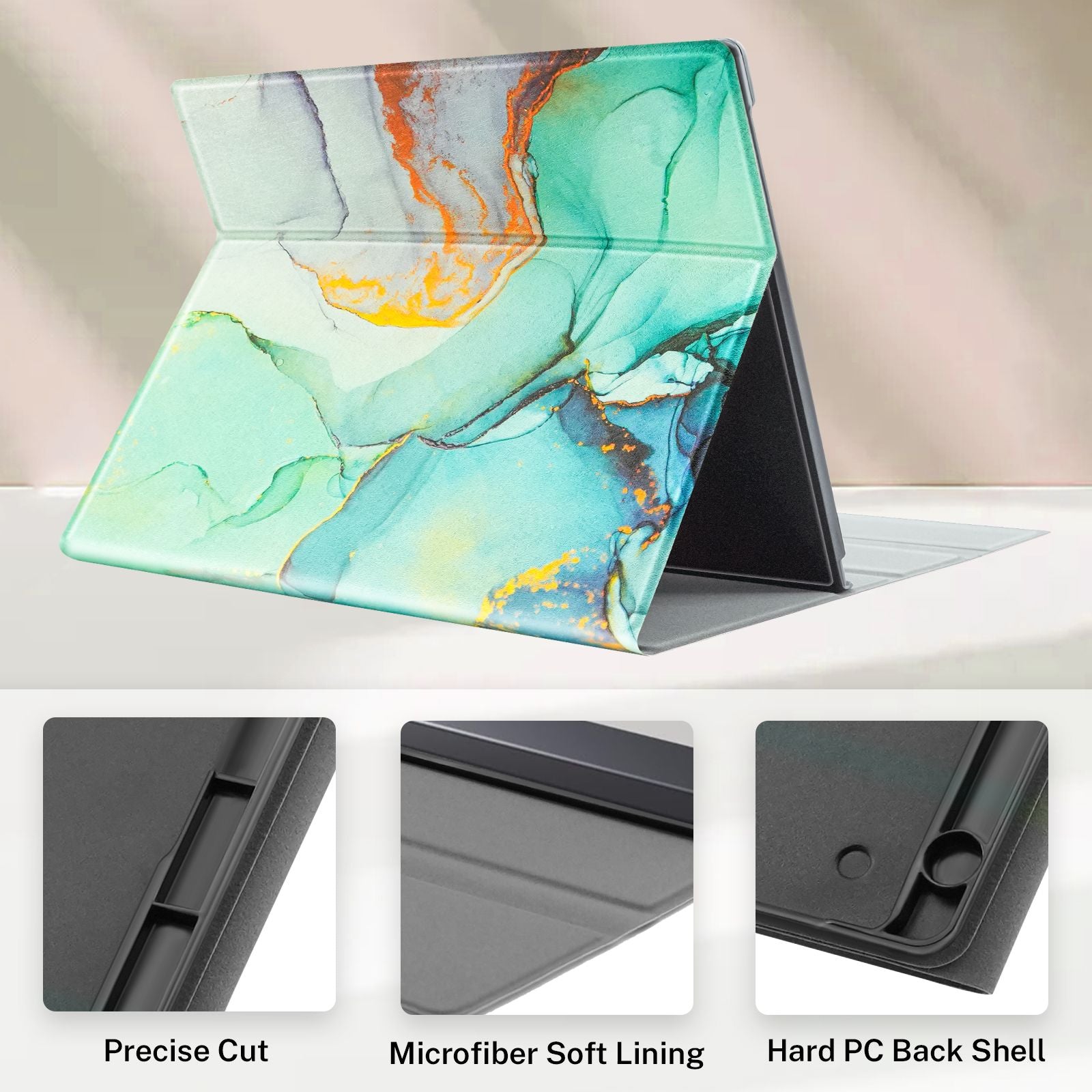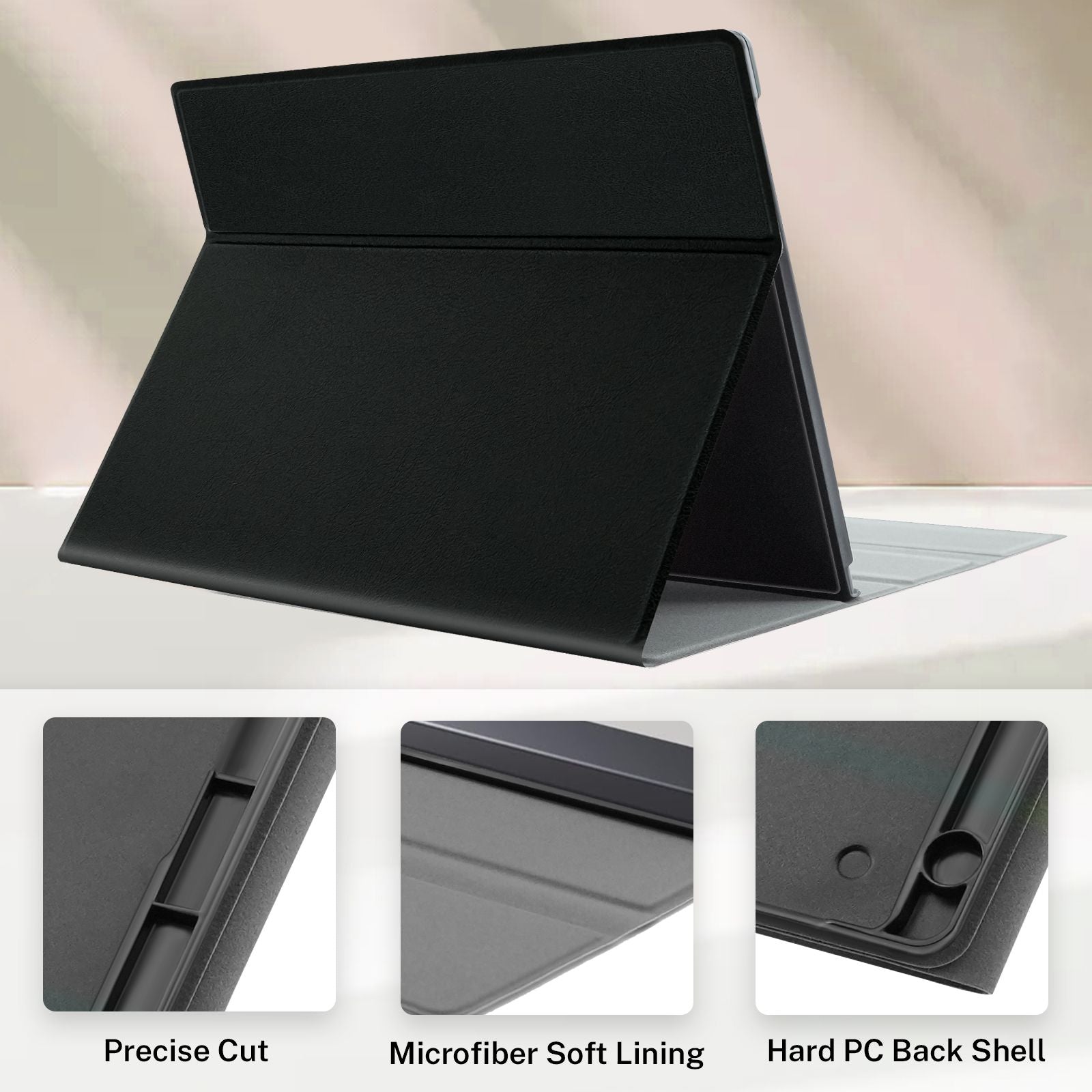 [Two Different Angles in Use]Allows tablet stand to be adjusted to different angles for better viewing or typing without removing the case. Choosing the correct angle ensures a more comfortable experience in various positions.