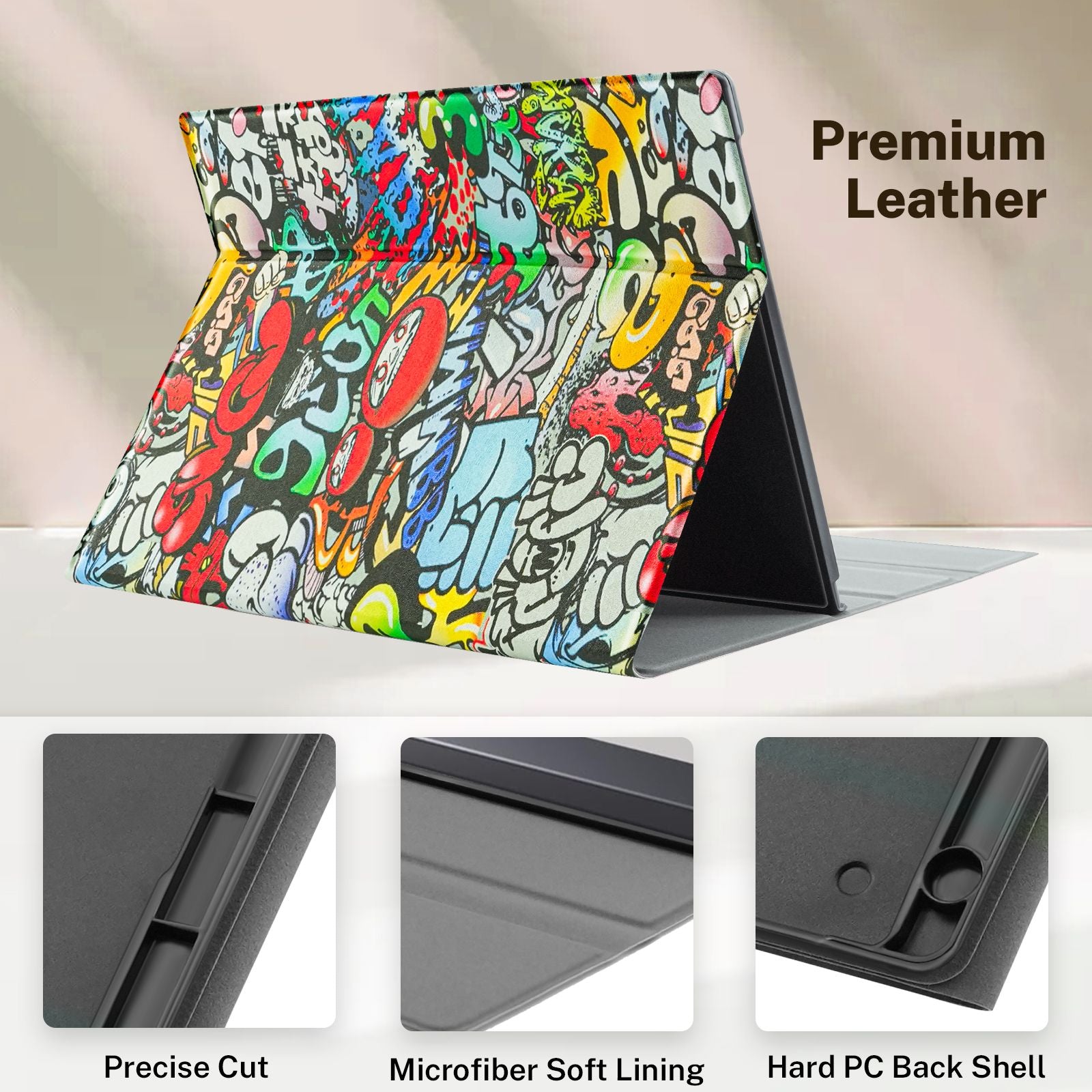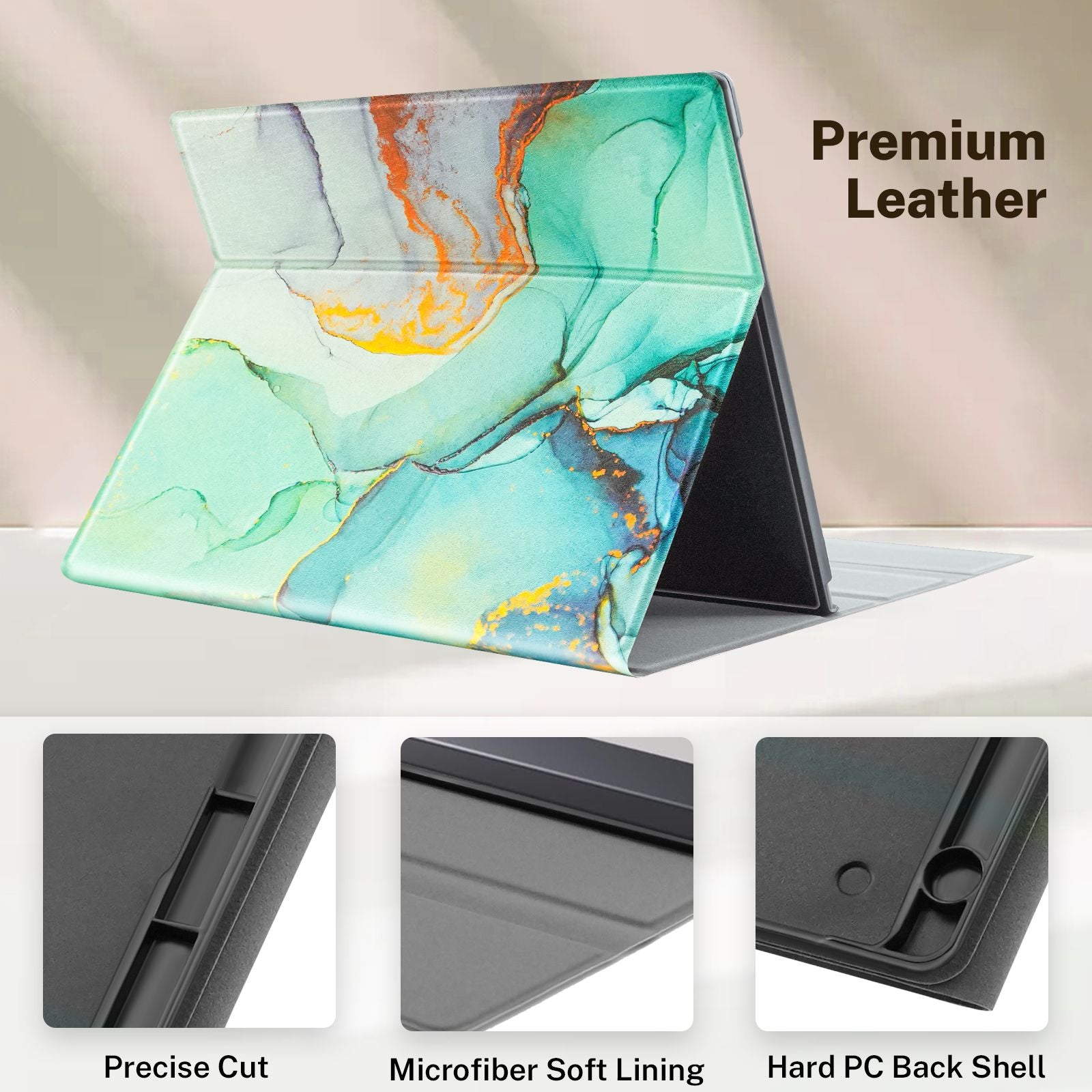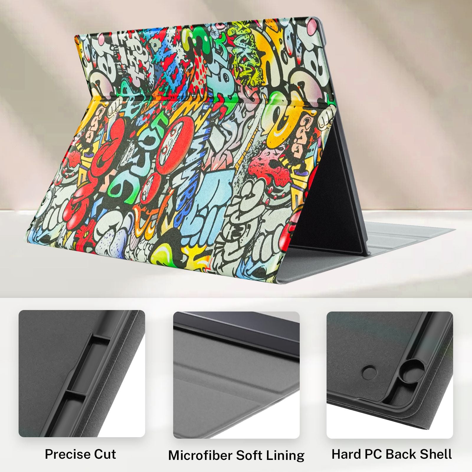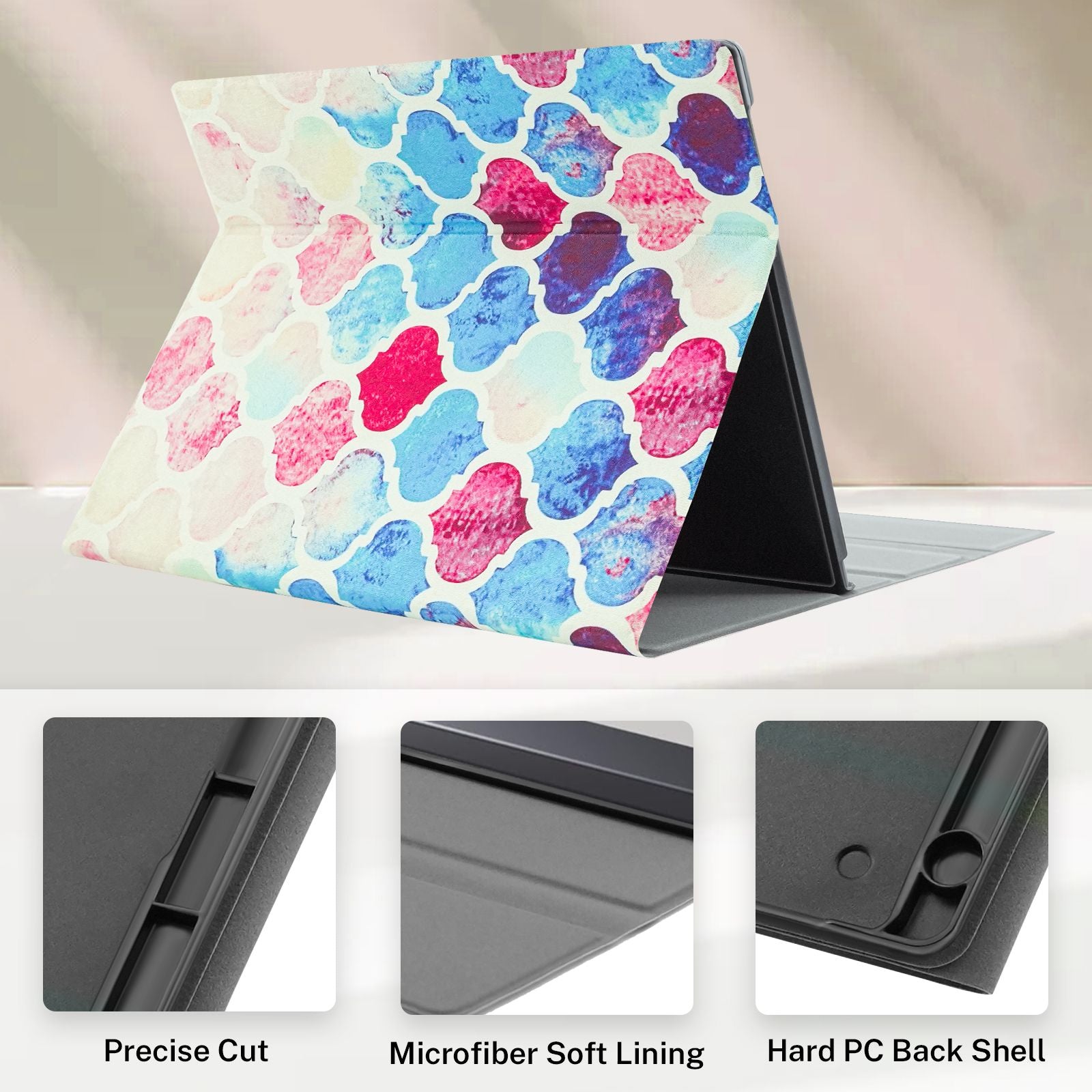 [Two Different Angles in Use]Allows tablet stand to be adjusted to different angles for better viewing or typing without removing the case. Choosing the correct angle ensures a more comfortable experience in various positions.