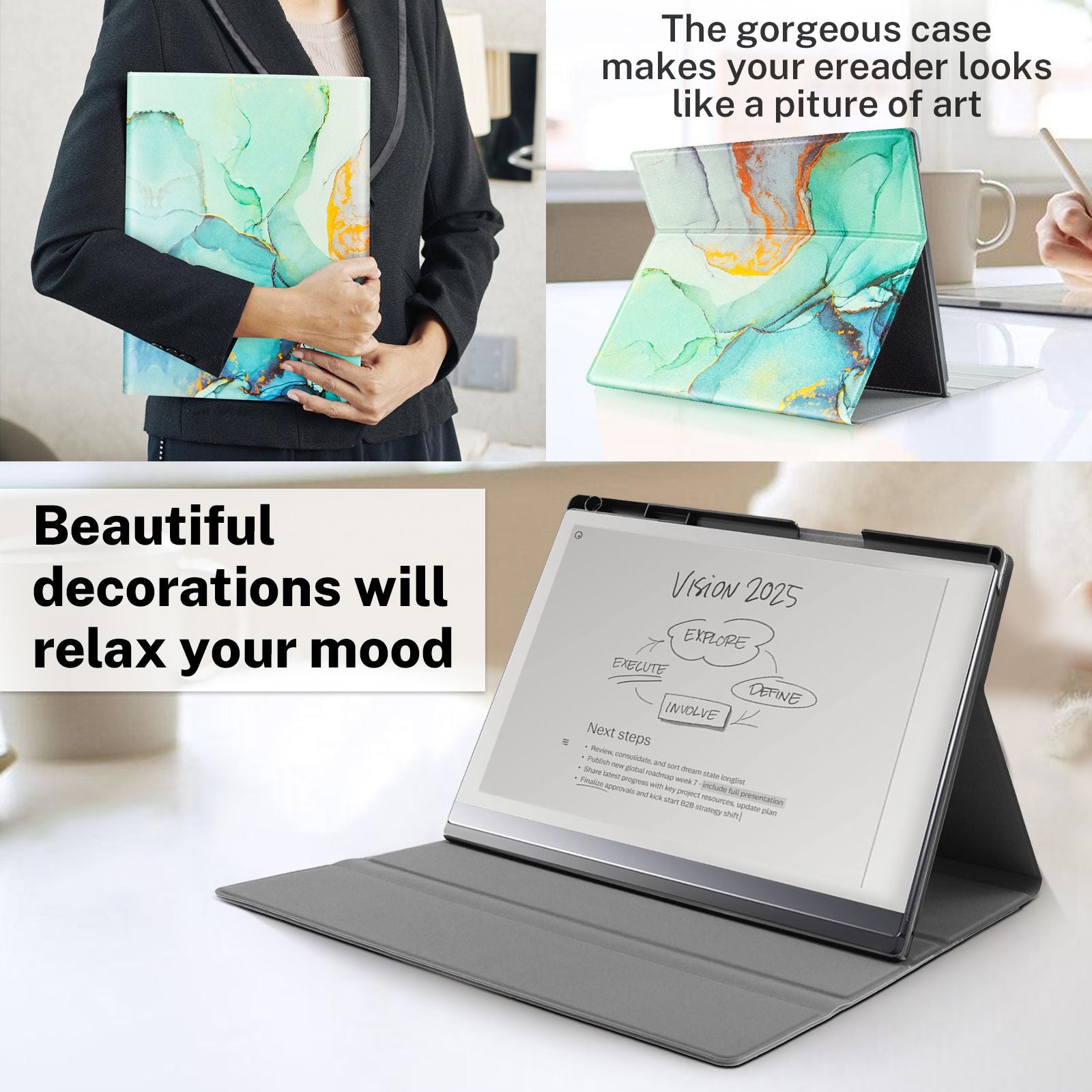 DESCRIPTION:Material: leather.Size: 9.8 x 7.8 x 0.6 inches.Applicability: Remarkable 2 Paper 10.3 Inch 2020Color: Black, Vintage Brown, Light Green, Pink, Dark Blue, B-Book, Moroccan Love, Starry Sky, Graffiti, Marble Green, Nordic Style, Moon Boy, AstronautFEATURES:1.Our case is compatible with Remarkable 2 Paper Tablet 10.3" 2020 Released, with precise cutouts for buttons and ports. Not compatible with other Tablet.2. Allows tablet stand to be adjusted to different angles for better viewing or typing without removing the case.3. Choosing the correct angle ensures a more comfortable experience in various positions.4. The case is lightweight and of good quality.5. It's convenient and not bulky to carry and with a built-in stylus holder, no more worrying about losing your Pen while on the go.6. Soft microfiber interior and hard-back shell that fits device perfectly with polished smooth protective edge protect your device from getting crashed and scratched.7. Premium smooth PU leather exterior cover protects your Tablet from water splashes, dust and stains, which makes it look like new.8.Includes Free Premium Screen Protector.PACKAGE LIST:1 case1 Screen Protector