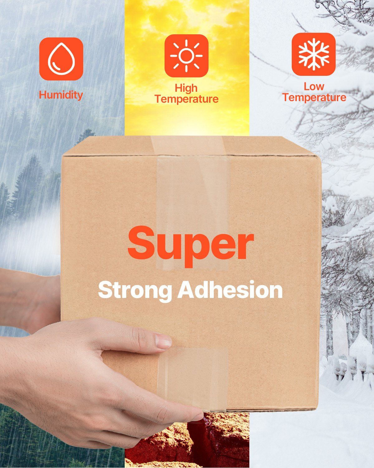 Premium Adhesive: Our heavy duty packing tape uses water-based acrylic adhesive, not solvent or hot-melt glue, and is free of formaldehyde. It bonds instantly to boxes, creating a durable, long-lasting seal that withstands extreme conditions like high or low temperatures, ensuring secure storage and shipping.