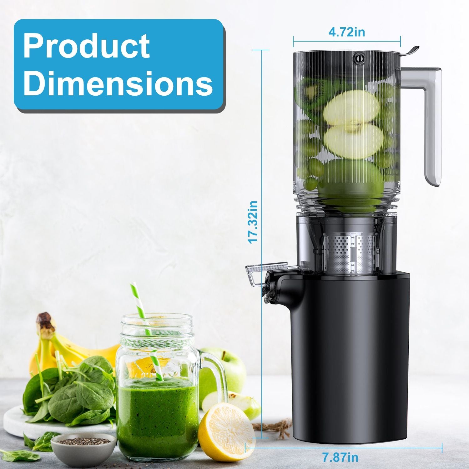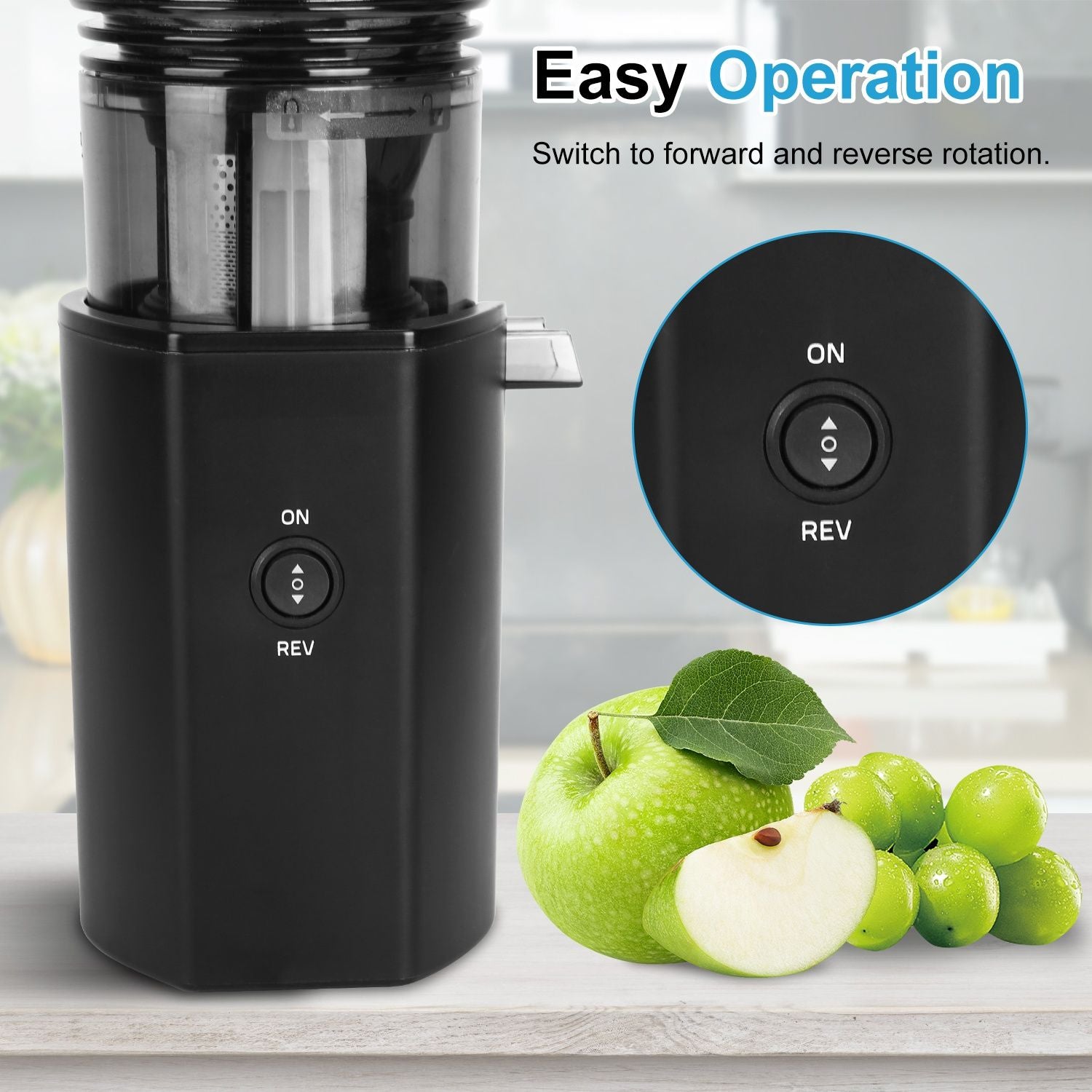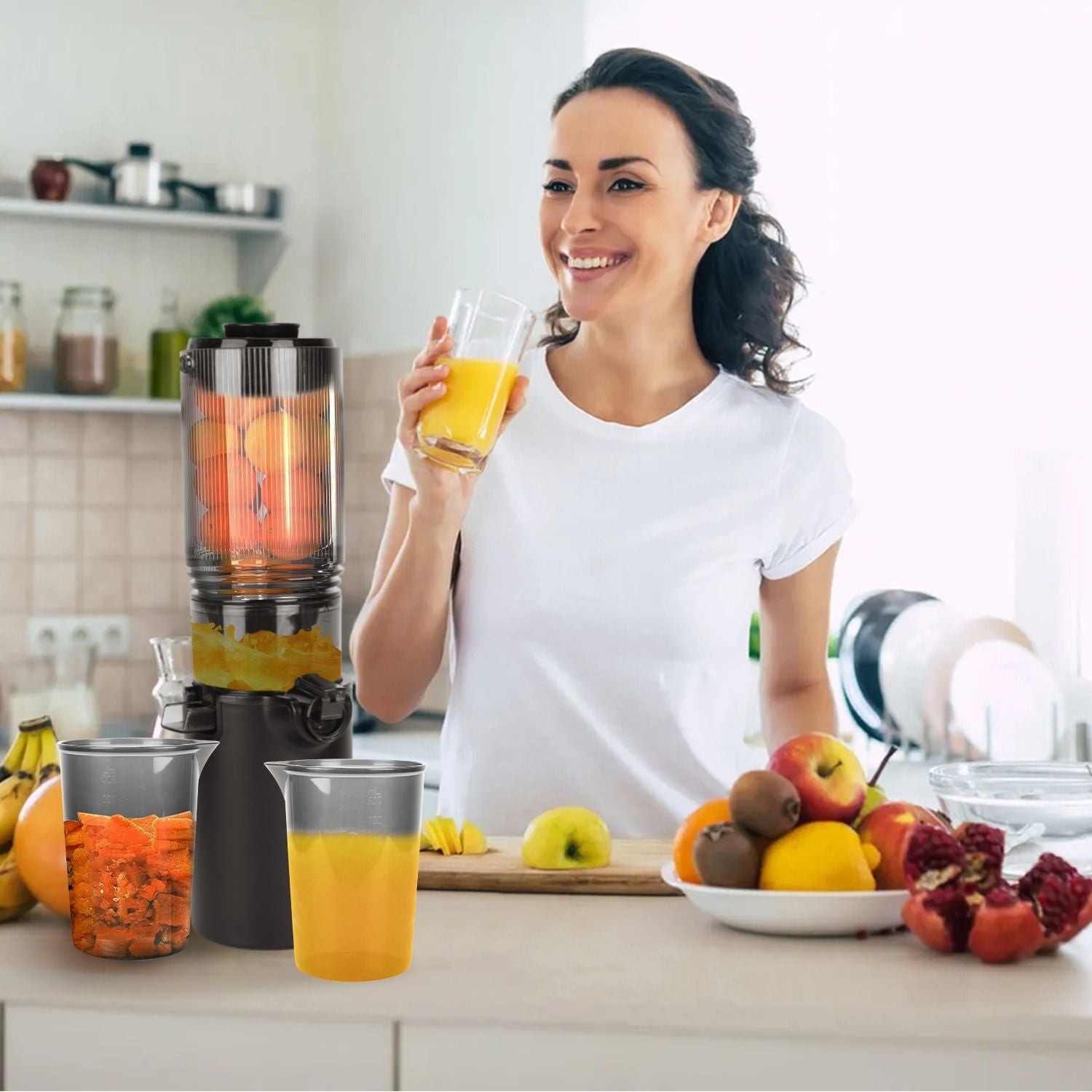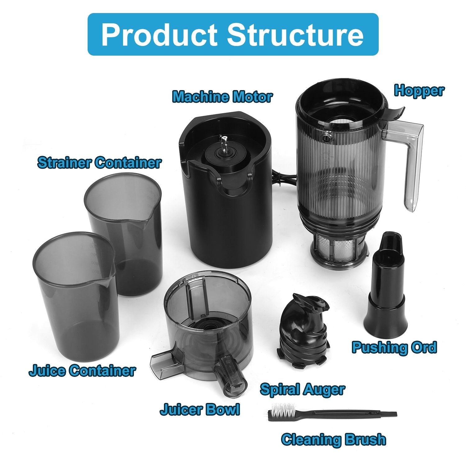 *Slow Cold Press Juicer*:Equipped with 250W pure copper brushed motor,our cold press juicer machine adopts 65RPM low-speed squeezing and multi-stage extraction technology,effectively minimizes oxidation and reduce the damage to the cell structure of the fruit during the juicing process. This slow cold press juicer helps maintain essential vitamins,nutrients and original flavor,allowing you to enjoy fresh and vibrant juices.