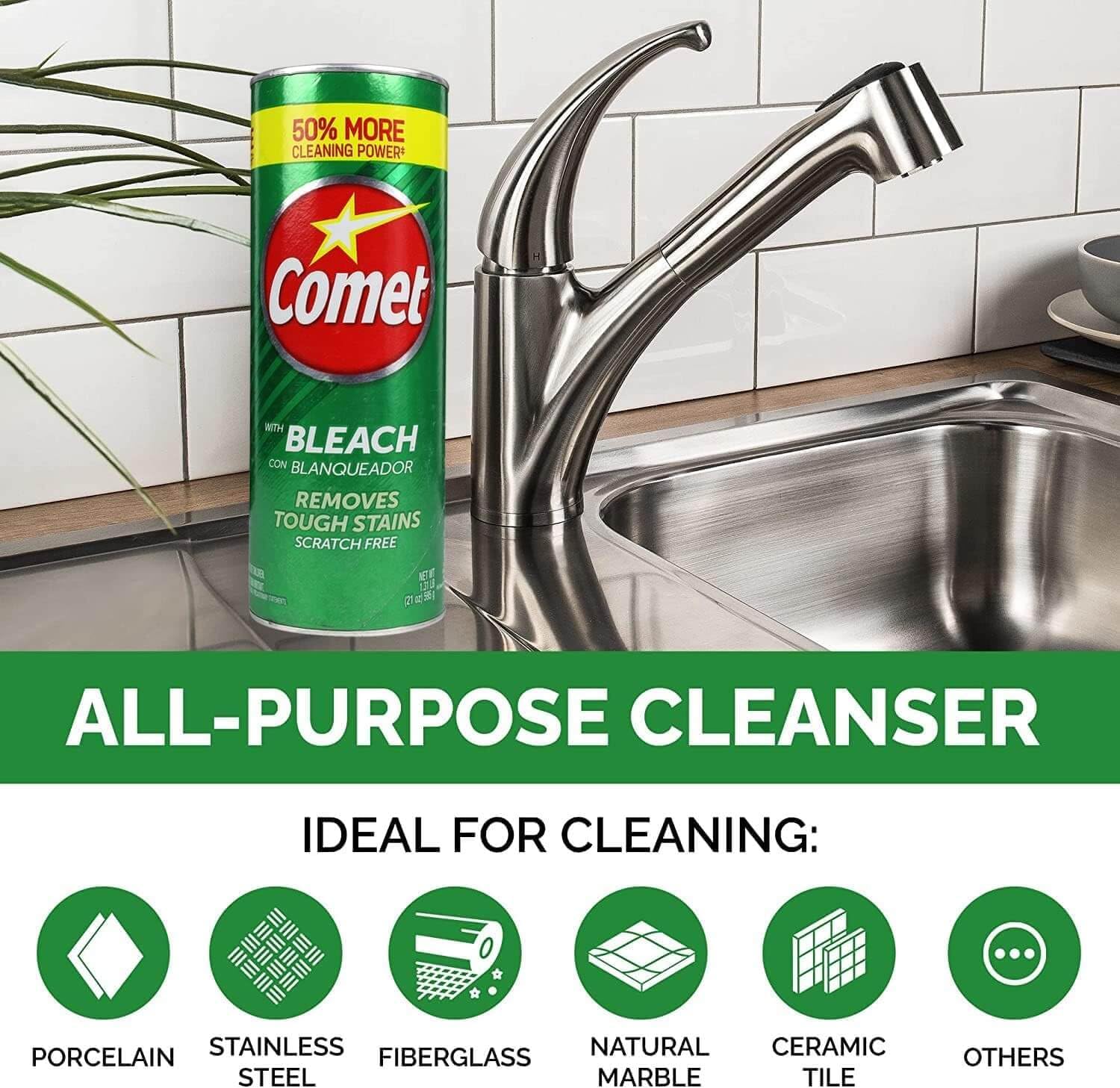 Comet Cleaner 2 Pack (21 oz Each) Powerful Surface Cleaner for Bathroom & Kitchen Tough Stain Remover Deodorizer & Freshener 50% More Cleaning Power Includes Landsing Bundled w Ship Bag