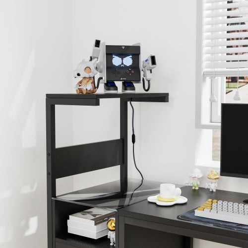 - Gaming Desk with Charge Outlets: Gaming desk is equipped with 2 sockets and 2 USB ports for your various charging needs, allowing you to keep your computer, mobile phone, iPad or other electronic devices charged at the same time and avoid cluttered cables under/behind the desk.