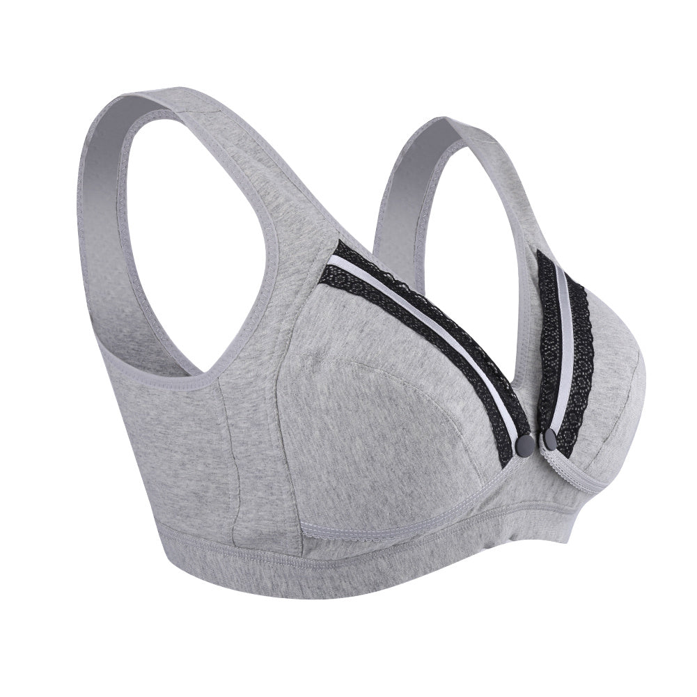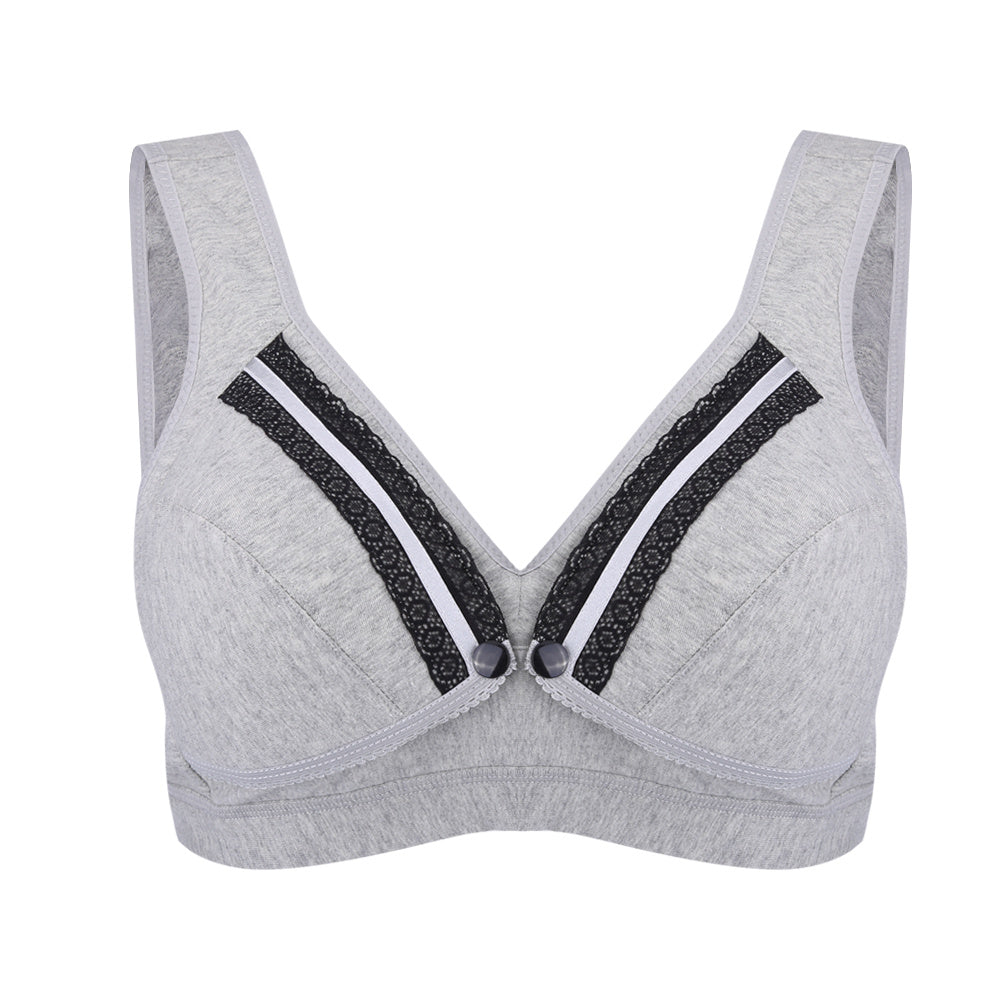1、95% cotton and 5% spandex, breathable, soft and comfortable, suitable for all year round wear 2、4 rows of hook & eye back closure helps to reduce the pressure of shoulder 3、Front opening button for convenient breast feeding 4、Wire free and widened shoulder straps offers more comfortable feeling 5、Healthy and gentle to skin, suitable for pregnant women or nursing moms