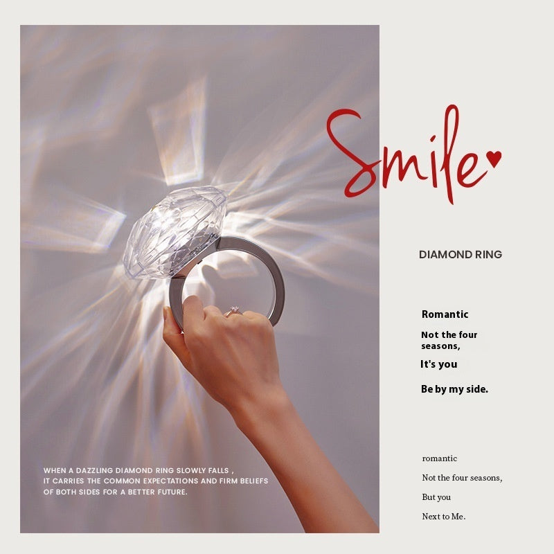Diamond Ring Projector Lamp Decor Small Night Lamp Ambient Night Light Creative Dimmable Home Bedroom Decoration