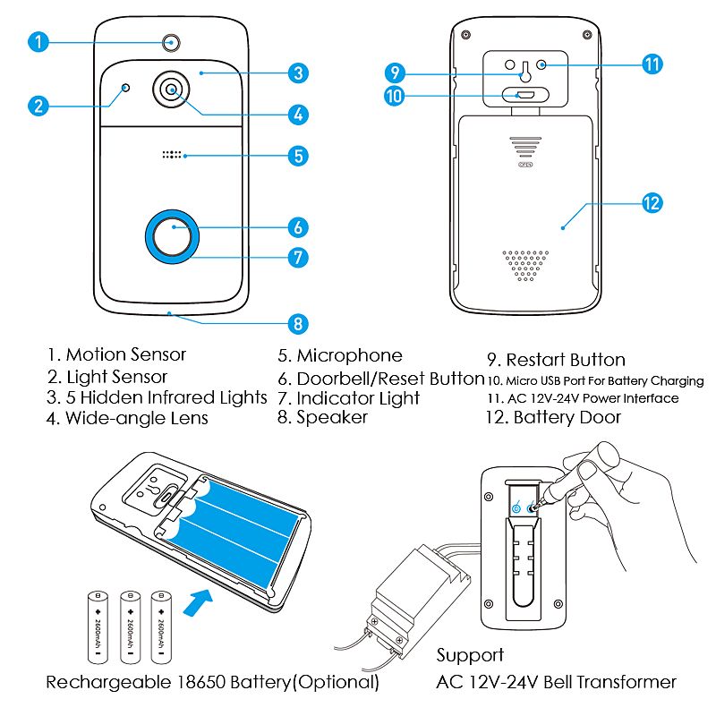 6.Support PIR motion detection; when someone hovers at the door; immediately