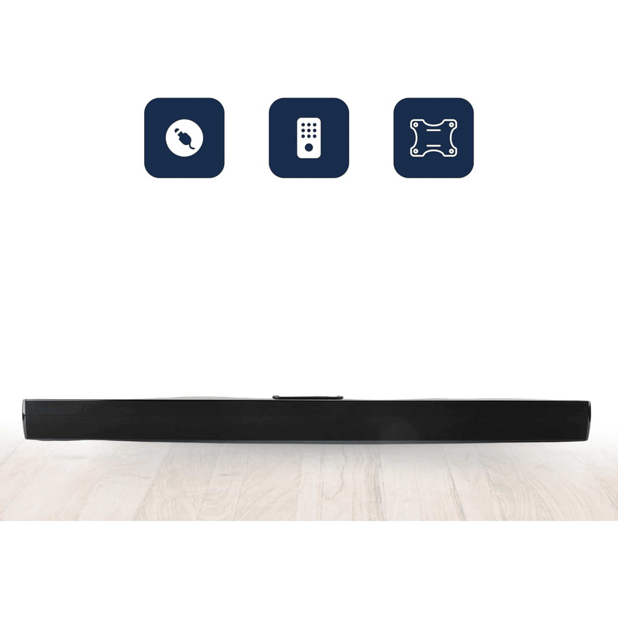 Broaden your home’s entertainment system capabilities with the Emerson™ 32' Sound Bar with Bluetooth. Built with a sleek, modern design, this sound bar will look at home in any living room. The EHS-2000 features a compact design while packing a powerful audio punch that will fill a room with high-quality audio without taking up too much wall space.