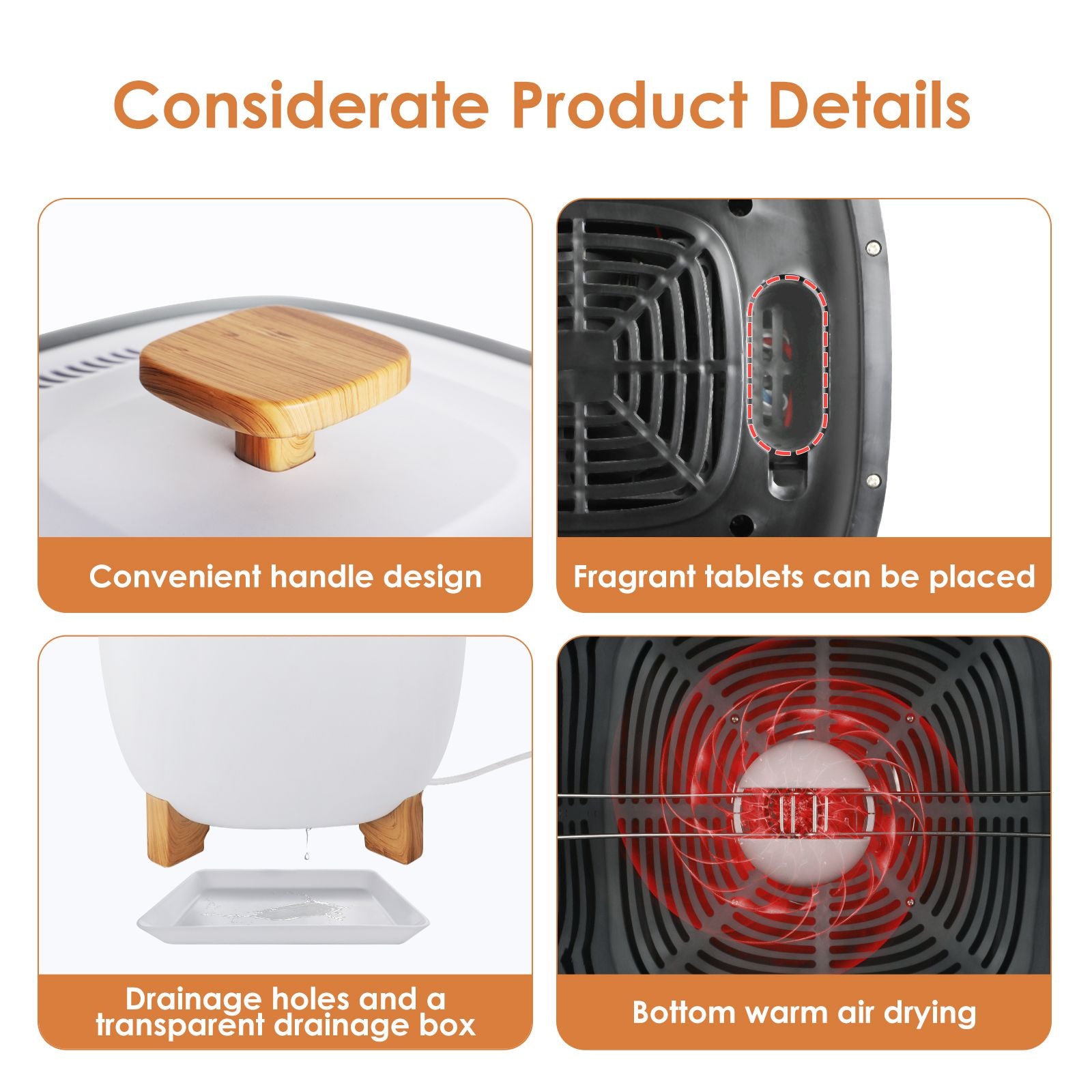 Heat Evenly - This bath towel warmer will heat towels all the way through! No cold spot anymore. Enter a whole new world when you step out of the shower and turn your bathroom into a spa-like experience!Compact and Safe - Safe to use, compact for easy storage. The towel warmer is lightweight enough to move around the home; the bucket and lid separate for quick cleaning, while the round-shaped base is stylish and attractive; operates efficiently and quietly.