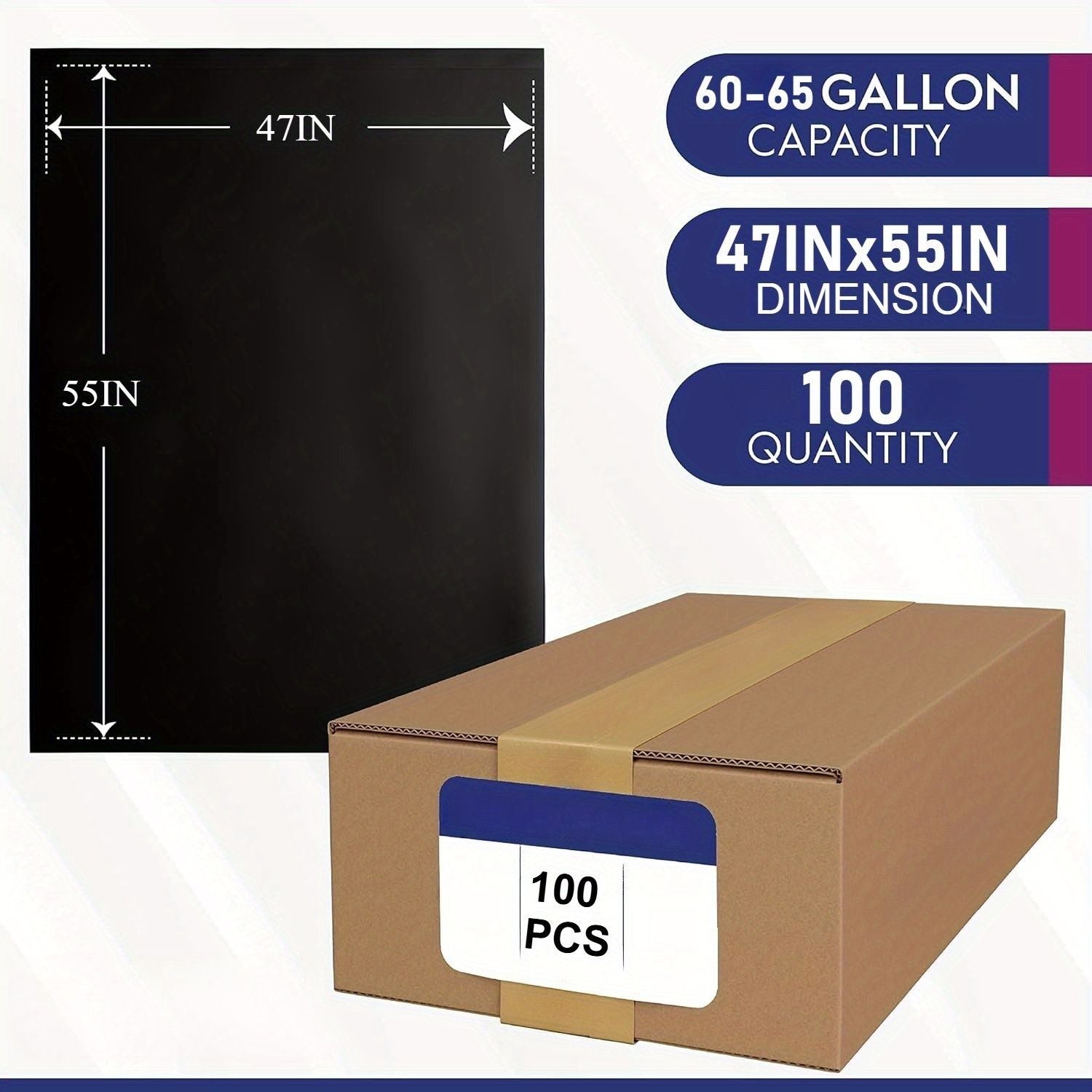 Extra Thick 65+ Gallon Trash Bags Heavy Duty - 100 Count Black Tear-Resistant Garbage Bags for Outdoor Waste, Leaf Cleanup, Camping - High Density & Weatherproof