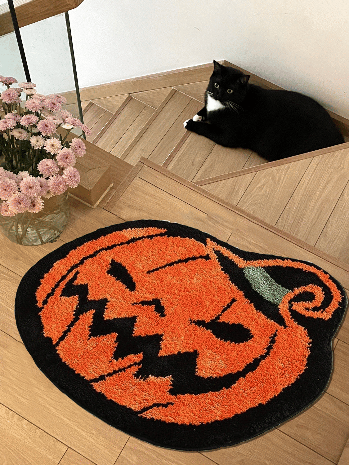 Festive cute pumpkin decoration Halloween bathroom rug, Halloween pumpkin bathroom bath mat, farmhouse Halloween bathroom rug, home decoration, festive cute pumpkin decoration non-slip