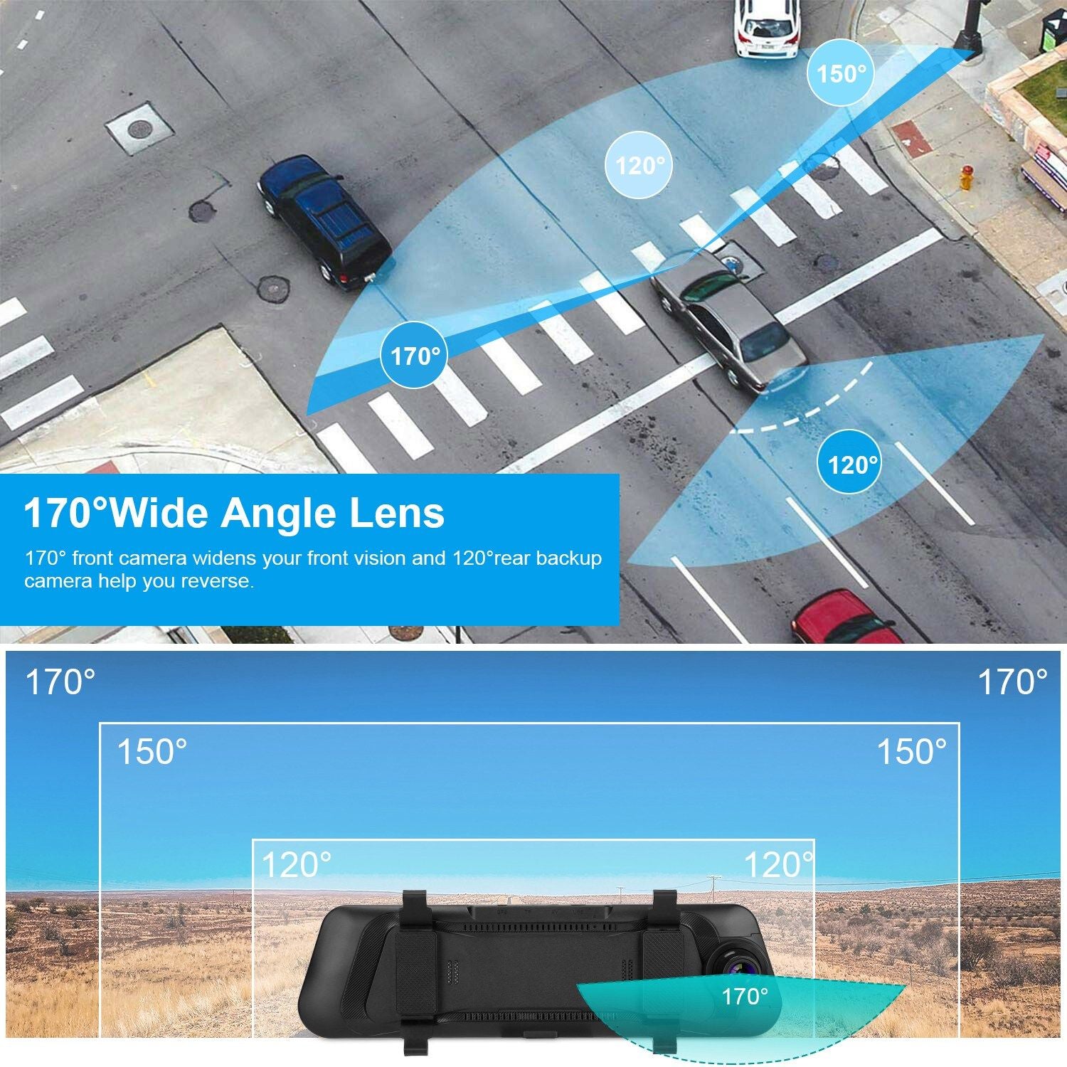 *FRONT & REAR DUAL DASH CAMERA*:HD 1080P resolution front camera with dual LED lights and LED night vision waterproof backup camera,wide-angle camera(170° front),eliminate the blind spots of your vision and see the driving details clearly,backup camera provide the rear view and parking guide line automatically when reversing to ensure safe parking.