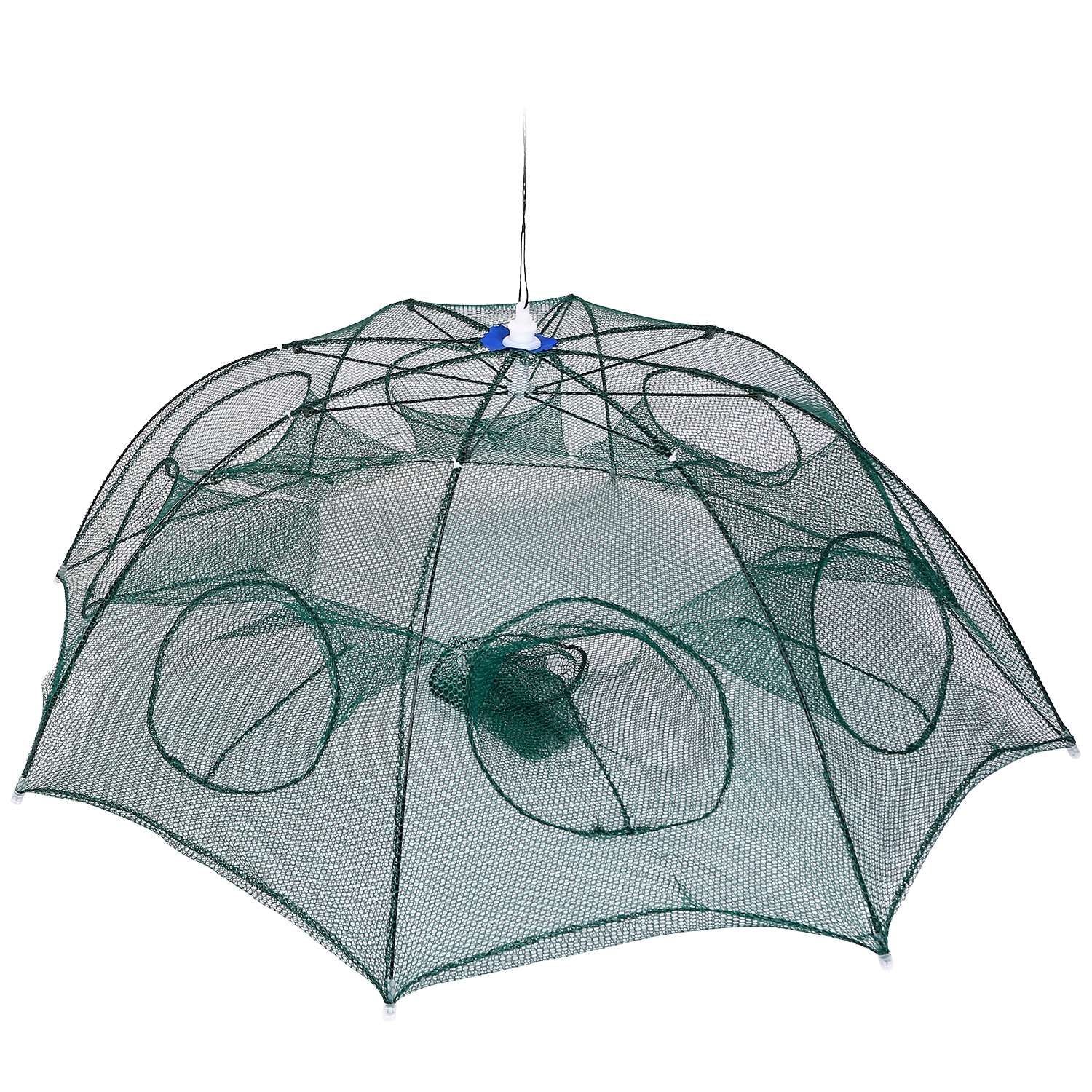 *360 Degree Catch*:8 Entrances sit at different directions; which can help catch smelt; eels; crab; lobster; minnows; shrimp and craw fish more efficiently. As for fish removal; just release the bait pouch and pour out fish.