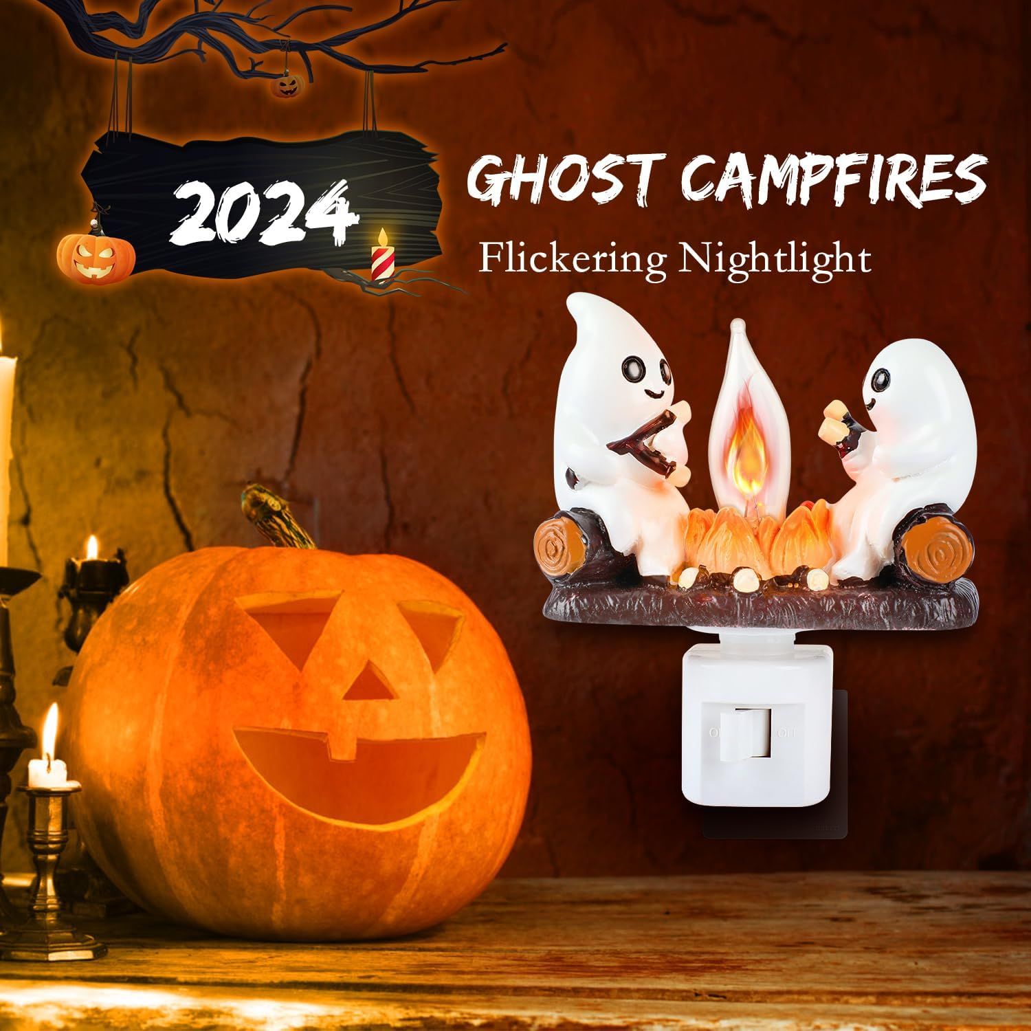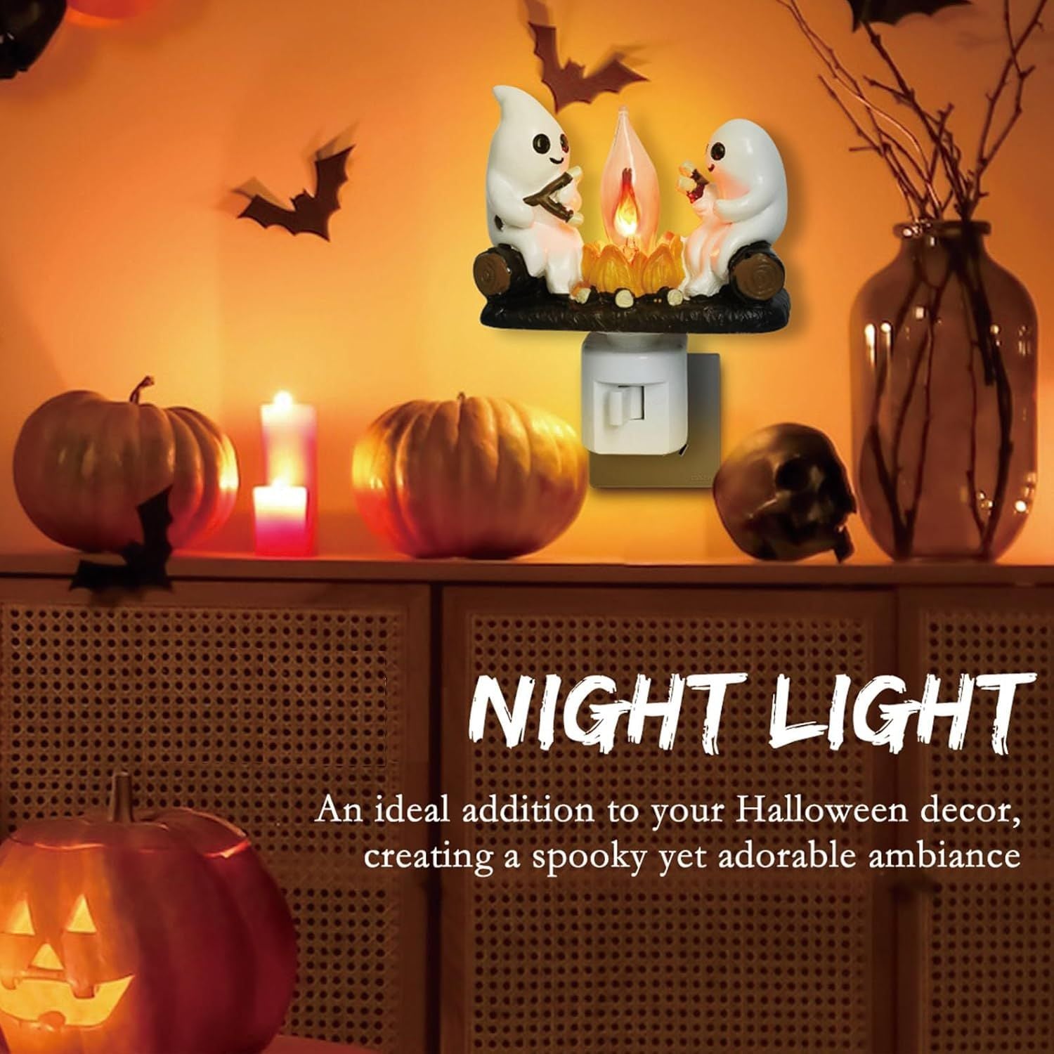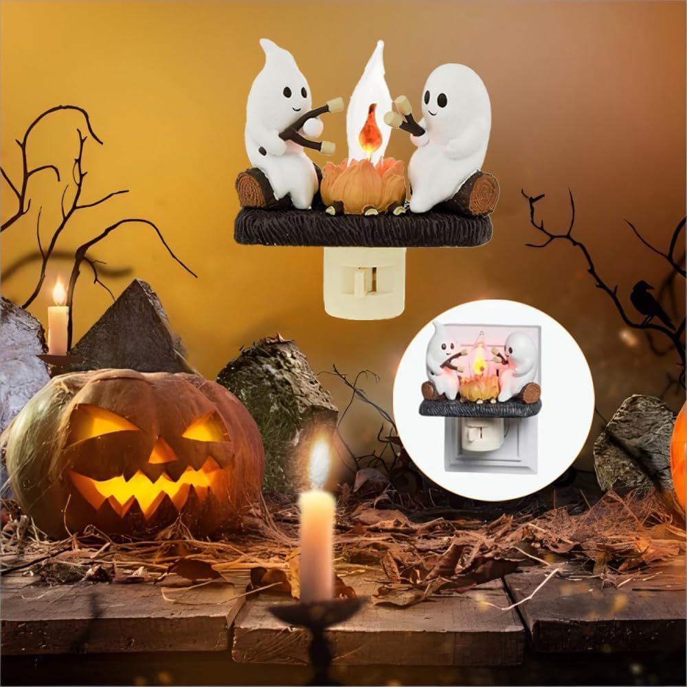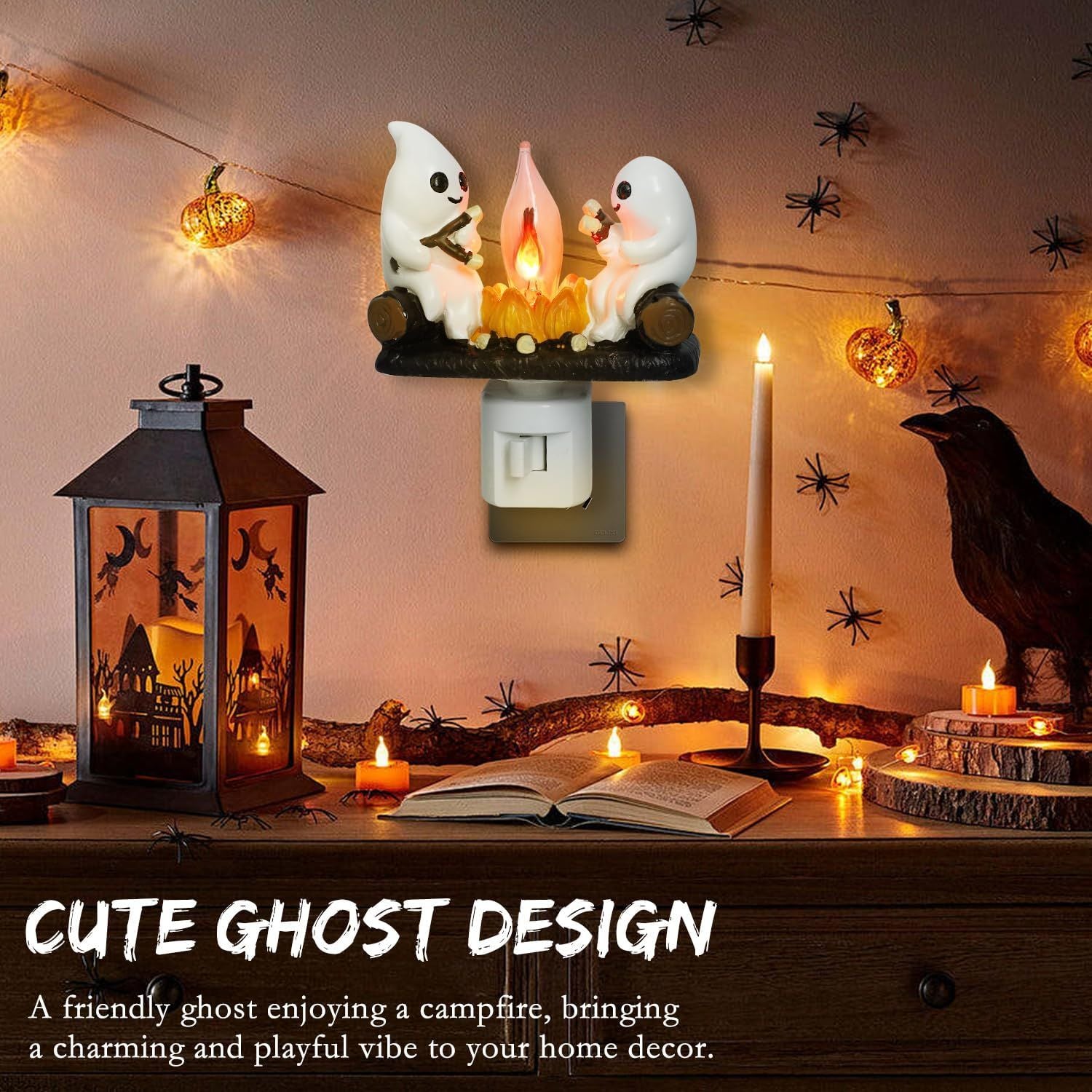 Ghost Campfire Flickering Night Light, 3D Small Electric Faux Campfire Night Light, Home Decorations