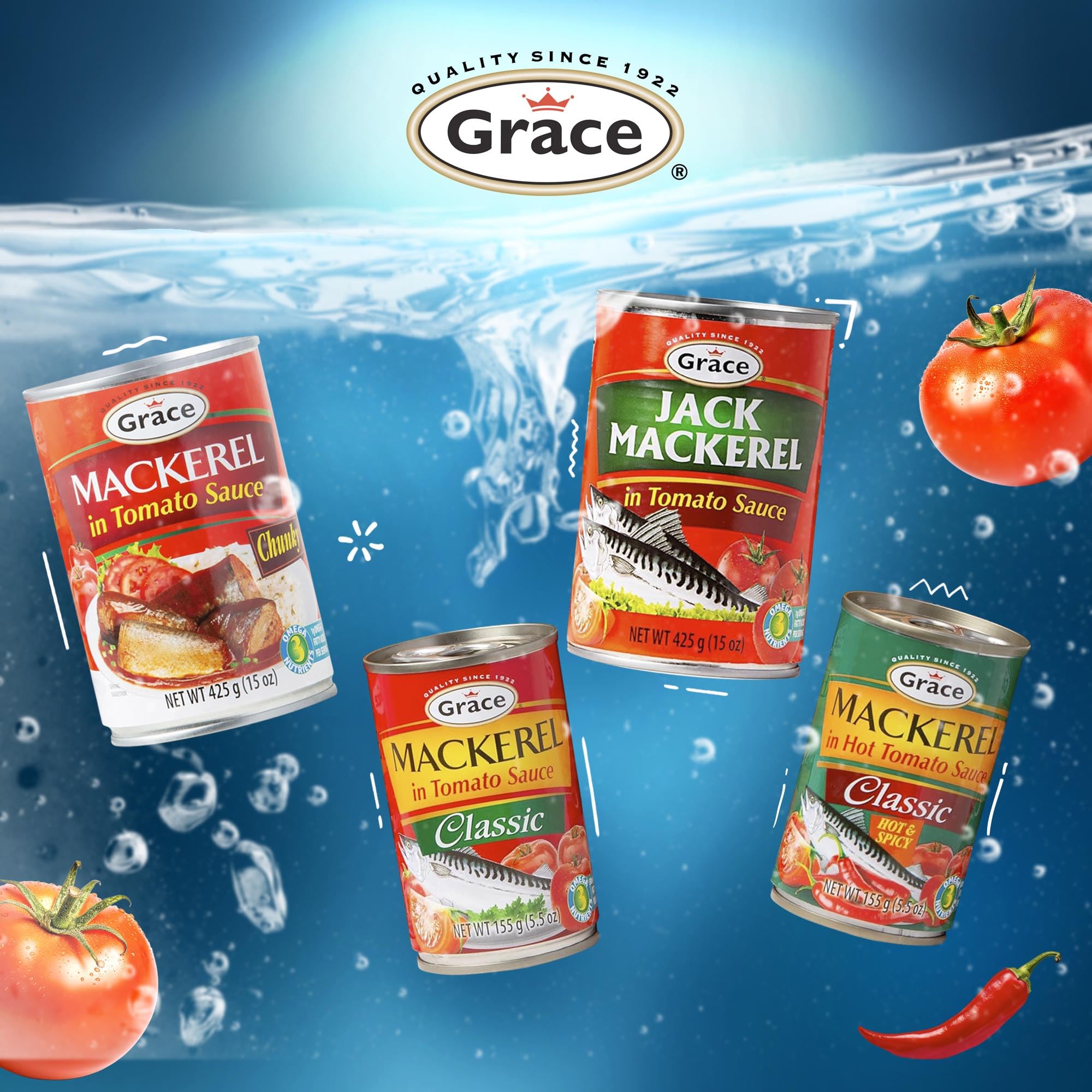 Grace Chunky Mackerel In Tomato Sauce 15oz - 2 Pack - Canned Mackerel