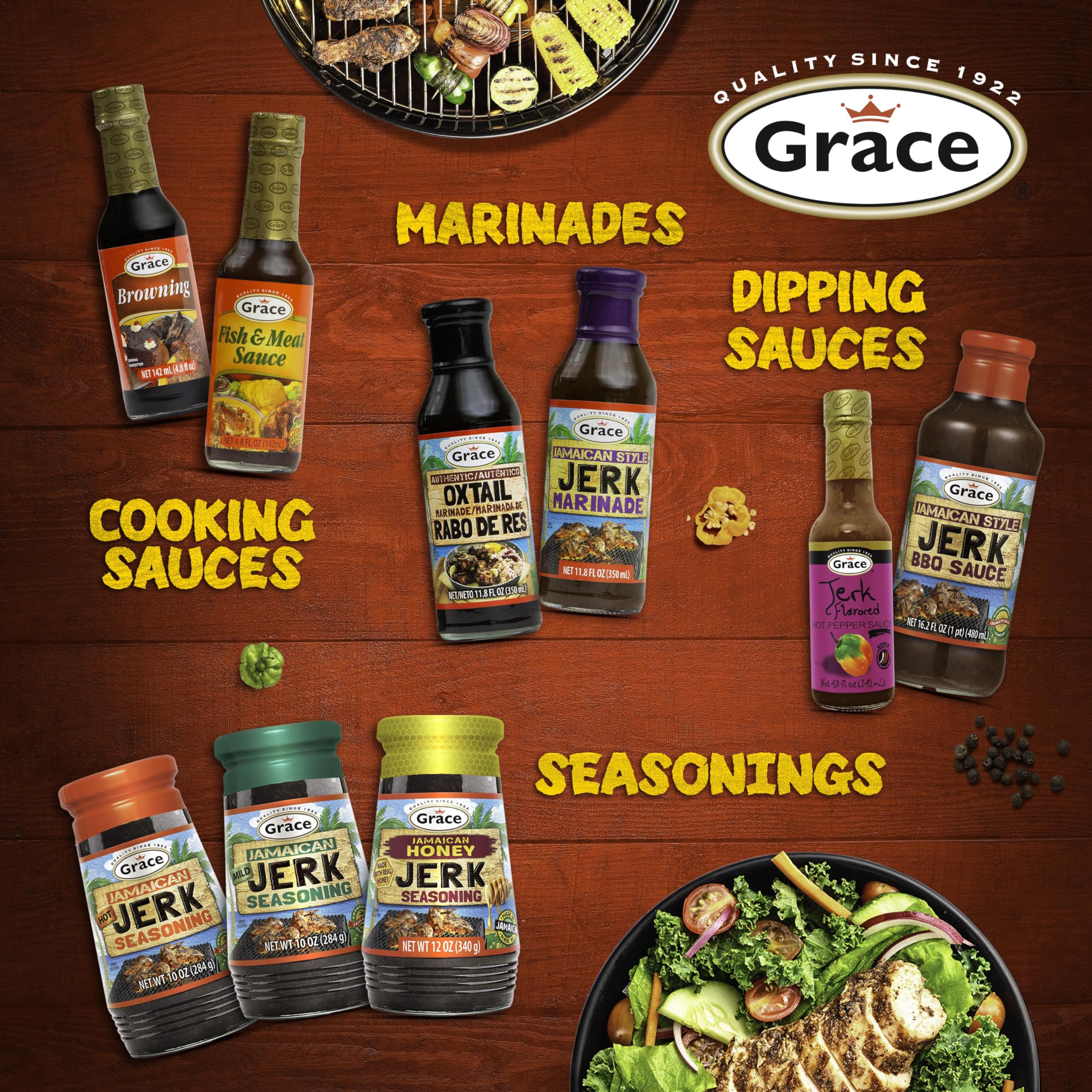 Grace Caribbean Sauce Fish & Meat Sauce offers a subtle yet distinctive flavor profile, perfectly balanced to enhance the natural taste of your favorite proteins without overpowering them. Unlike the fiery heat of Grace Hot Jerk Seasoning or the deep, caramelized notes of Grace Browning Sauce, this versatile sauce imparts a delicate touch of Jamaican spices, allowing the quality of your ingredients to shine through.