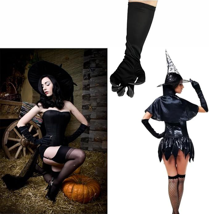 Halloween Costume Cat Woman Claw Gloves Paw Gloves Long Fingernails Black Party Gloves Cat Claws Halloween Prop Wolf Claws Glove Cosplay Costume(1 Pair)