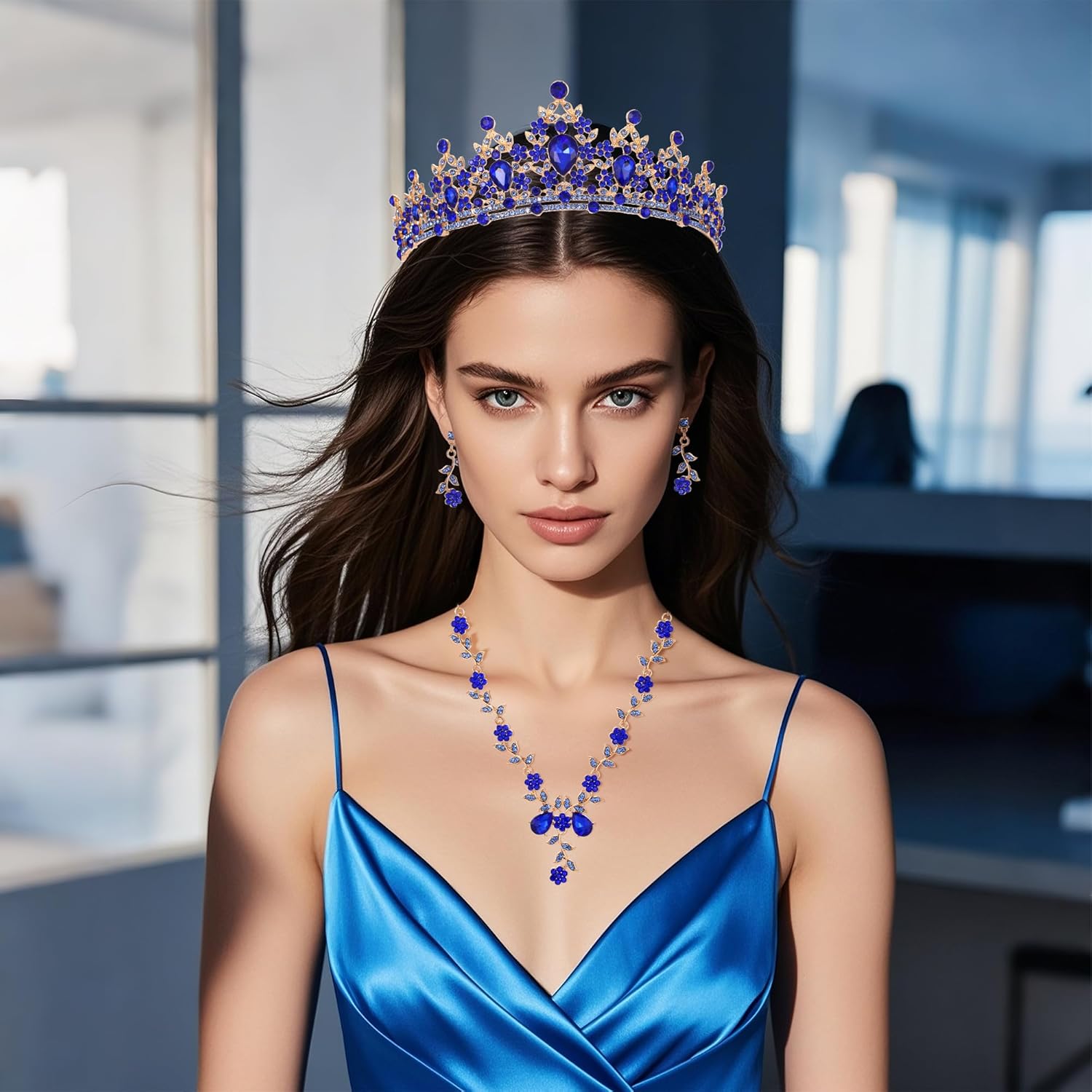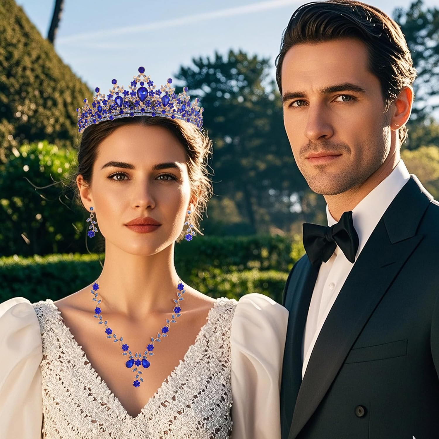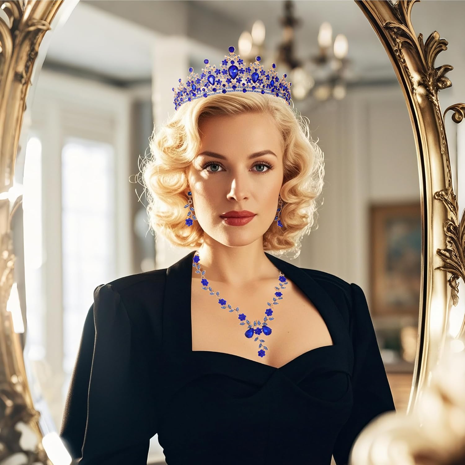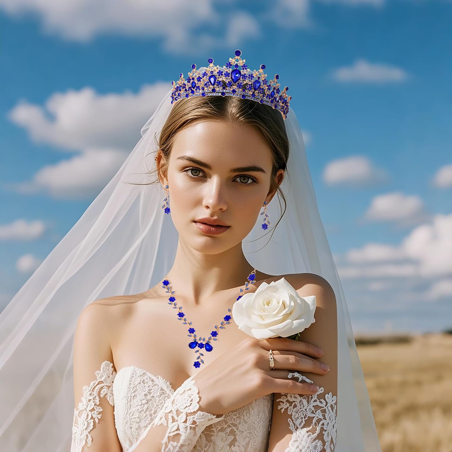 Kamirola Tiaras and Crowns for Women,Tiaras Earrings Necklace, Crystal Bridal Jewelry Set, Costume Party Halloween Prom Pageant Jewelry for Women(TR45) (Blue & Skyblue)