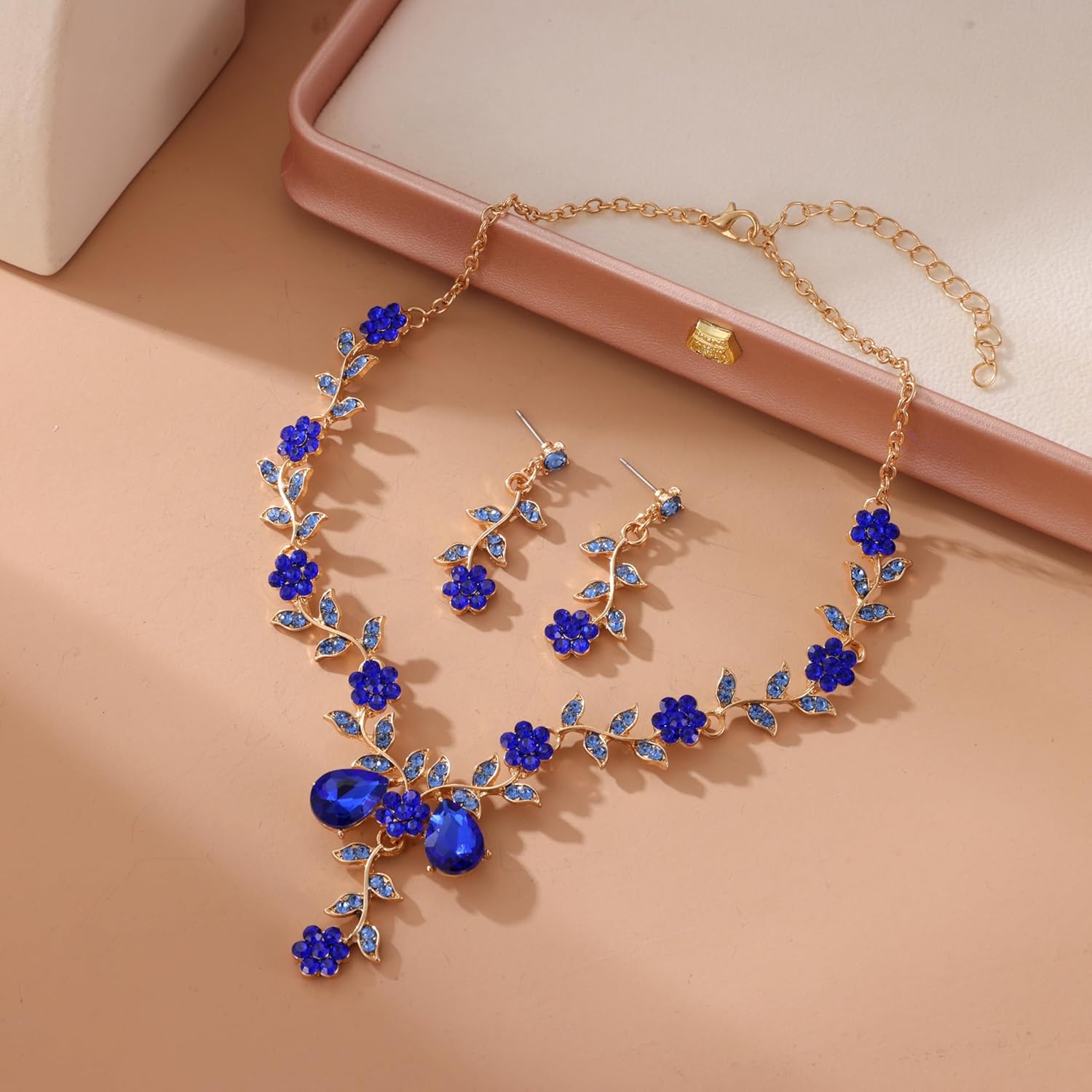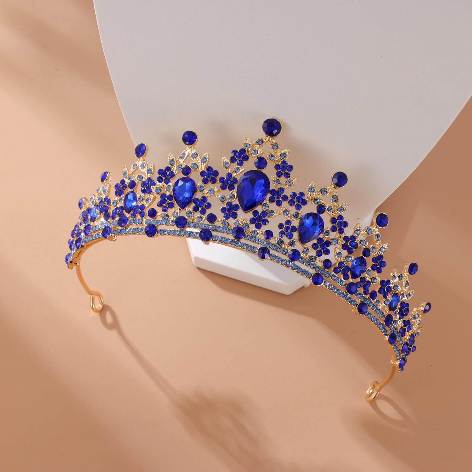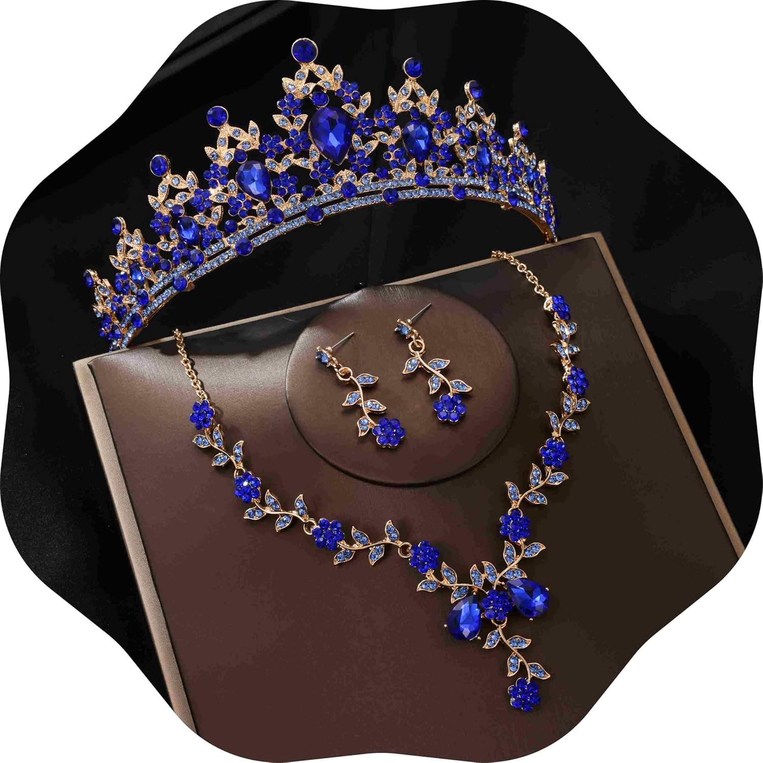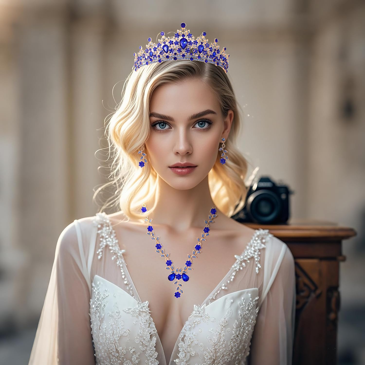 Kamirola Tiaras and Crowns for Women,Tiaras Earrings Necklace, Crystal Bridal Jewelry Set, Costume Party Halloween Prom Pageant Jewelry for Women(TR45) (Blue & Skyblue)