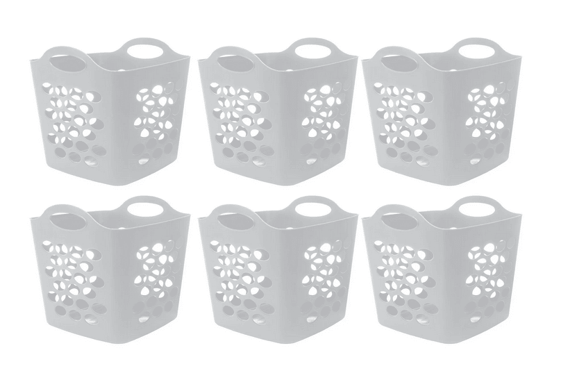 Mainstays Flexible Plastic Laundry Basket, Arctic White, 6 Pack