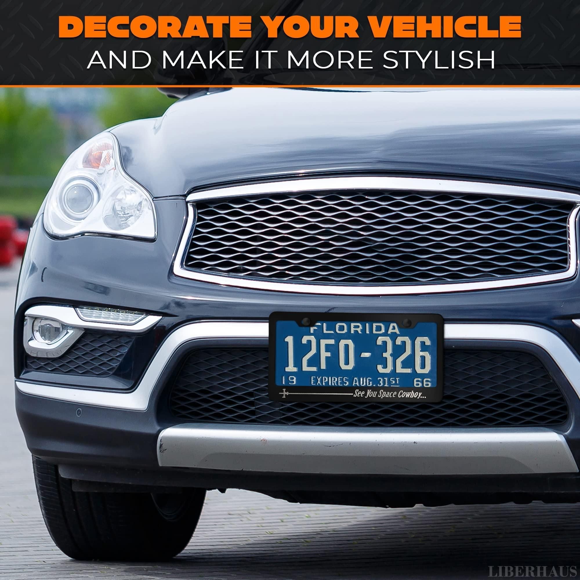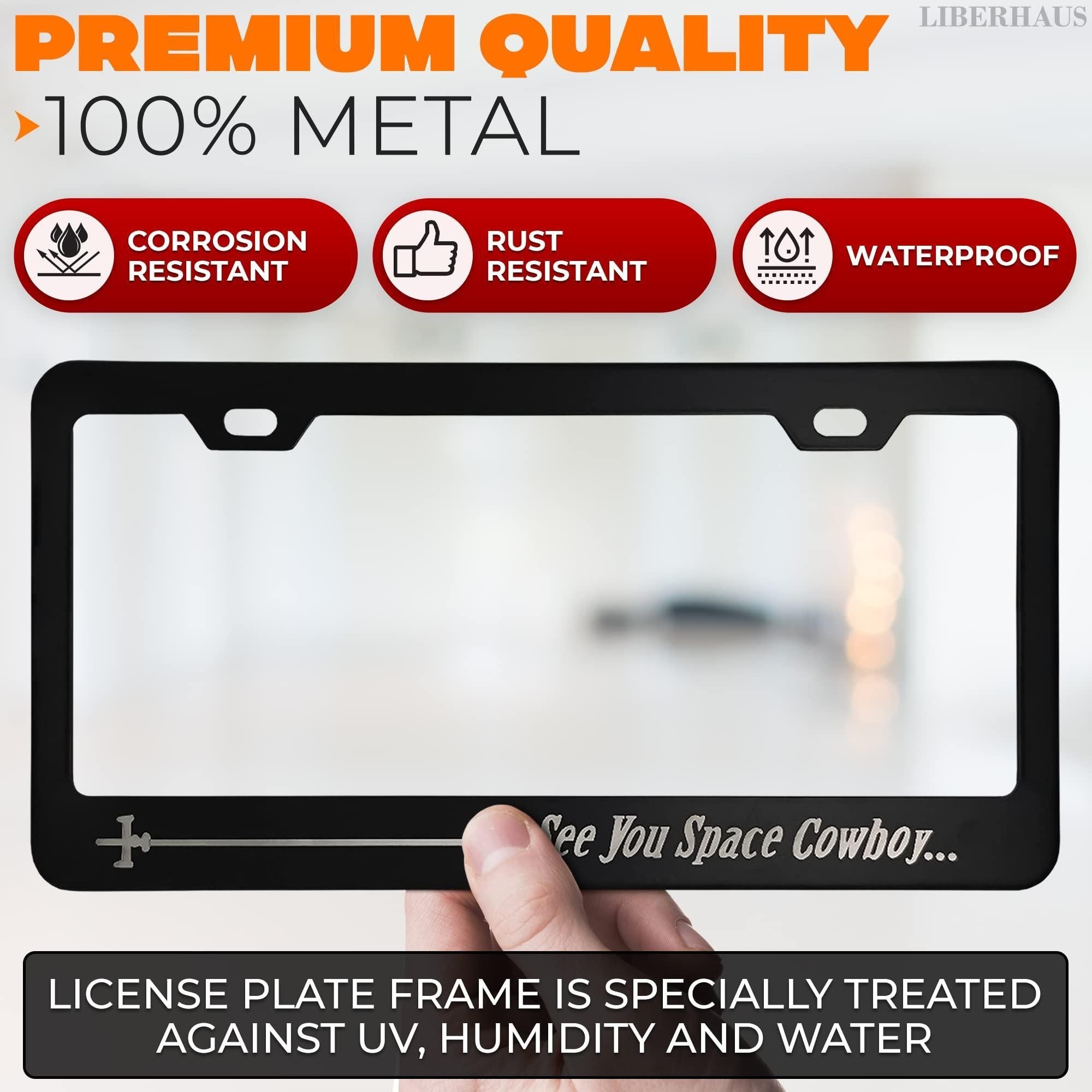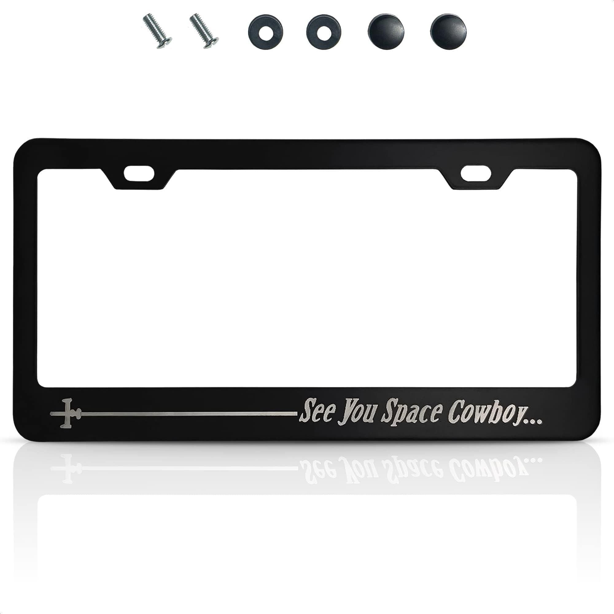 Matte Black License Plate Frame Funny for Anime Fans See You Space Cowboy Anime License Plate Frame Design 12.2 x 6.3 Inch Easy to Install Stainless Steel Holder for US & Canada