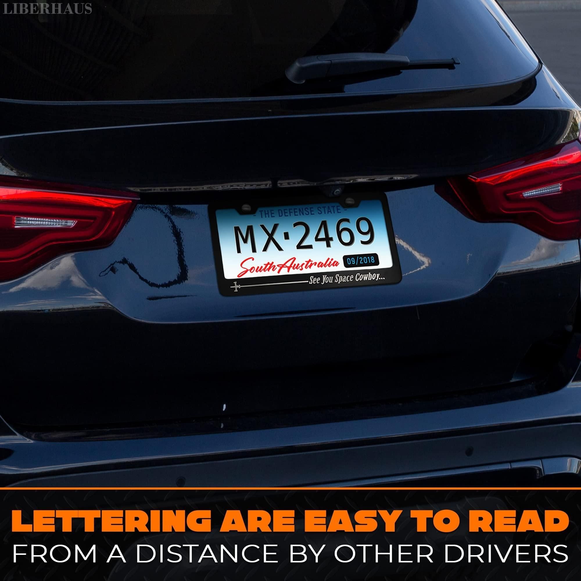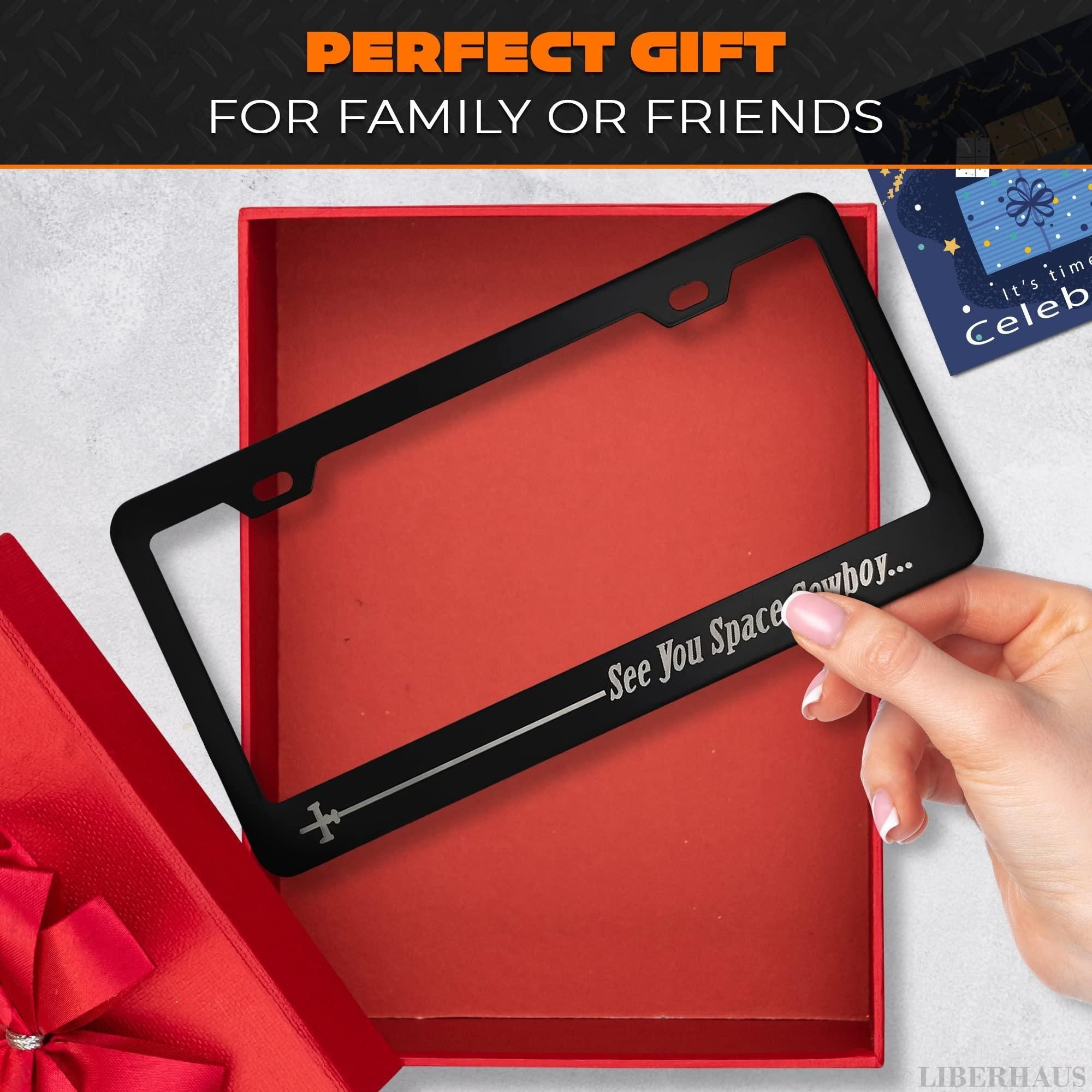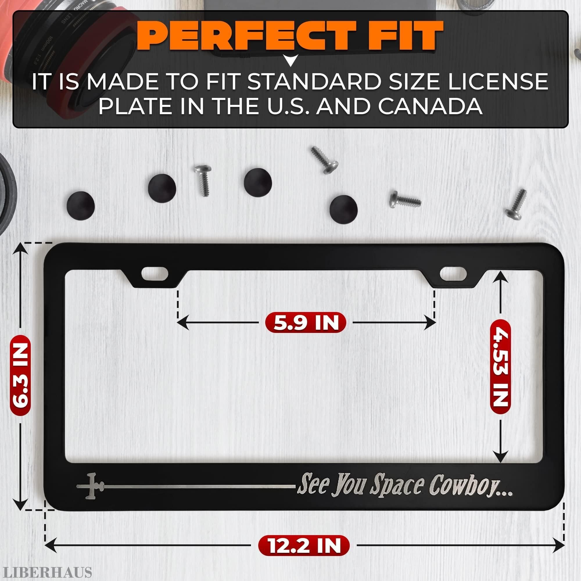 Matte Black License Plate Frame Funny for Anime Fans See You Space Cowboy Anime License Plate Frame Design 12.2 x 6.3 Inch Easy to Install Stainless Steel Holder for US & Canada