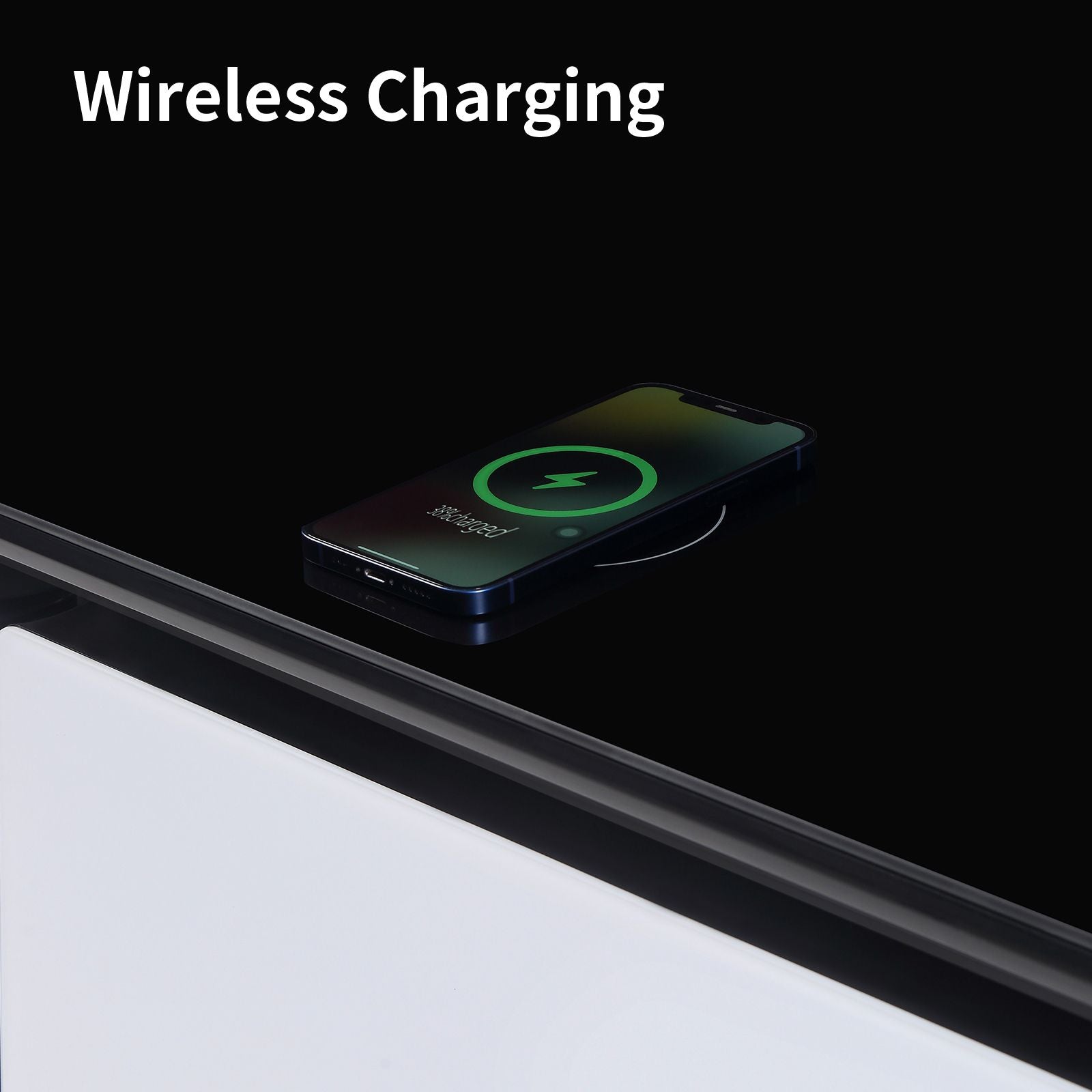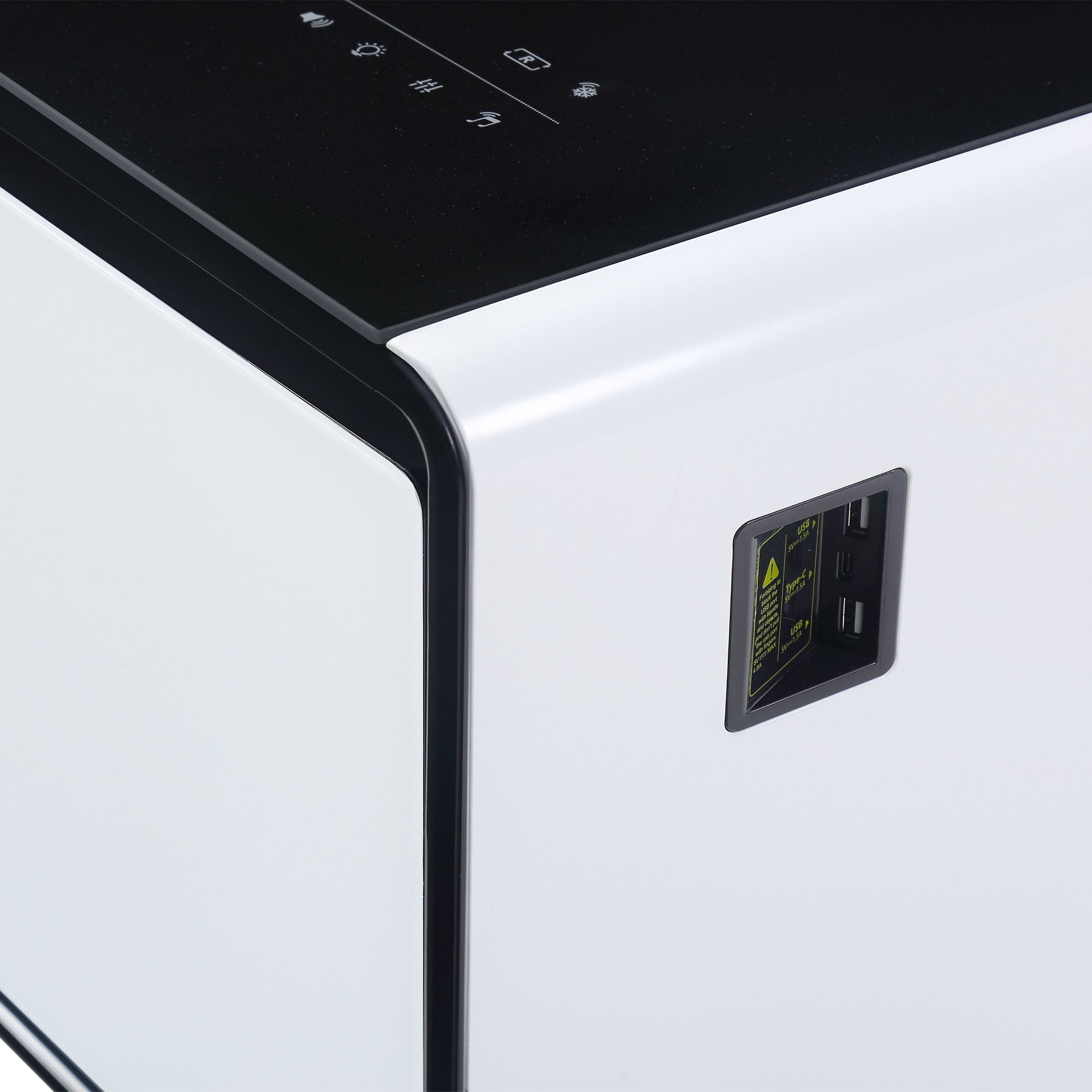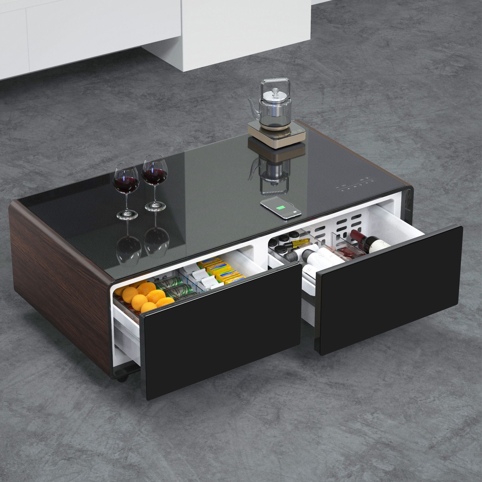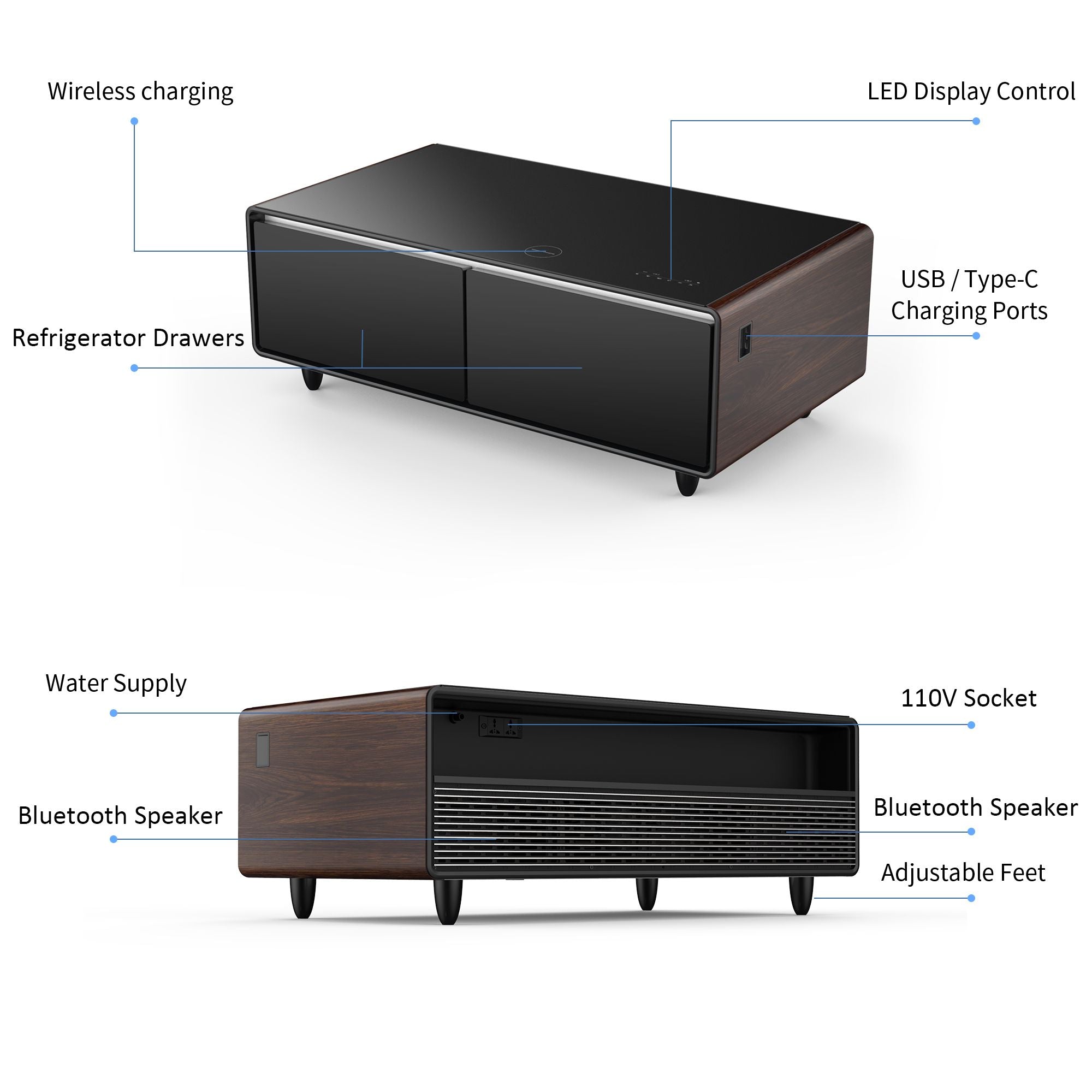Modern Smart Coffee Table with Built-in Fridge, Bluetooth Speaker, Wireless Charging, Touch Control Panel, Power Socket, USB Interface, Outlet Protection, Atmosphere light