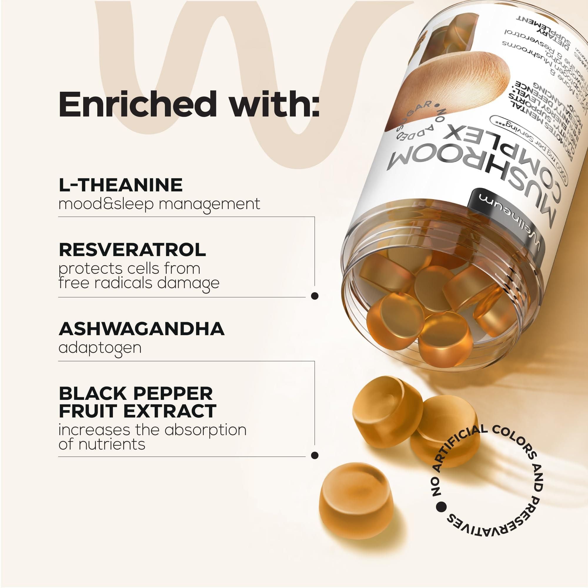 Mushroom Gummies 5000 Mg for Adults Lion's Mane and 9 Adaptogenic Mushrooms Blend Ashwagandha L Theanine Organic Adaptogenic Mix for Energy Immunity and Focus No GMO Sugar Free 2 Pack