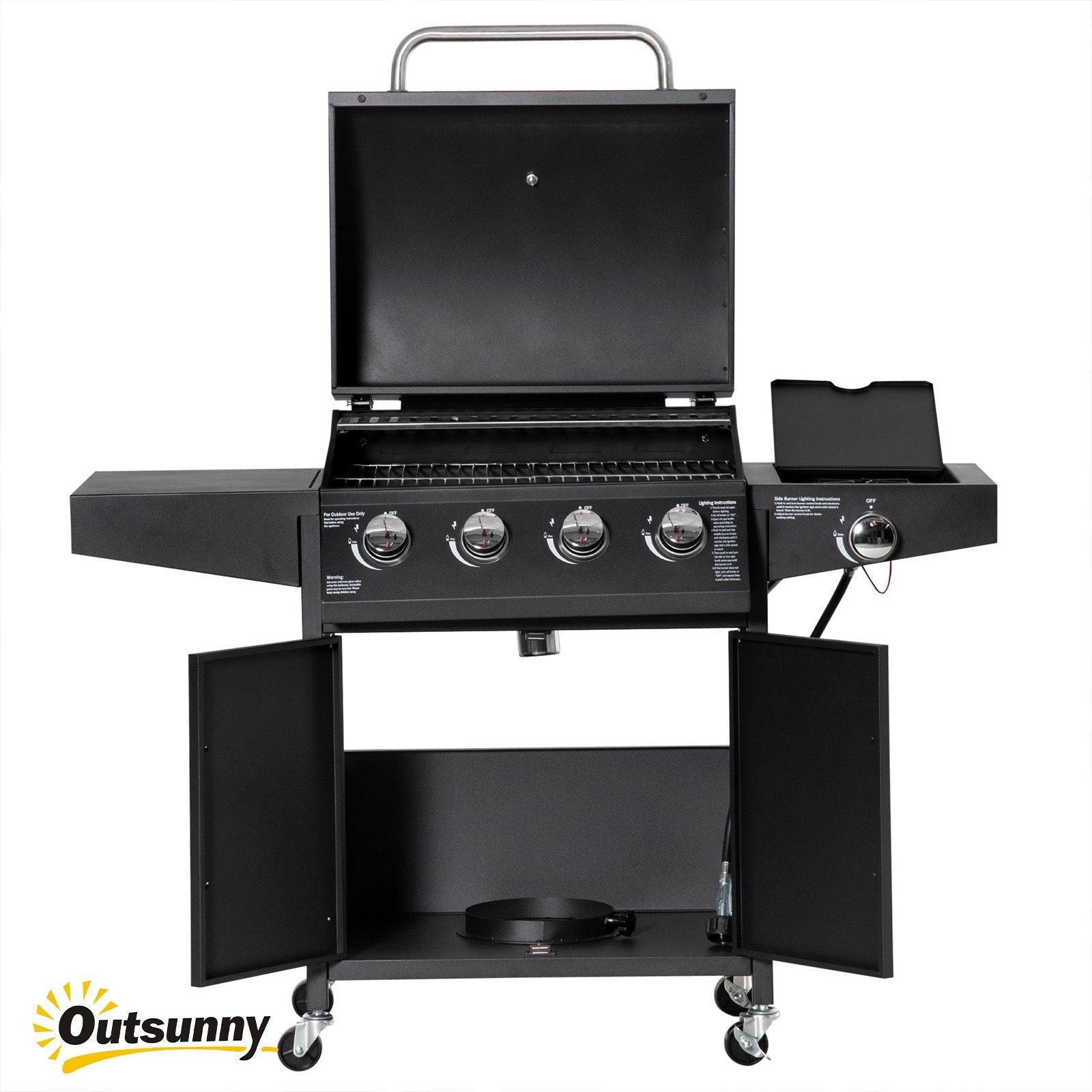 - 4+1 GAS BBQ: The large gas BBQ grill with 4 main burners, a side burner, a wide grill area, and a warming rack is ideal for outdoor barbecue parties. Each one is with piezo ignition and can be separately operated..