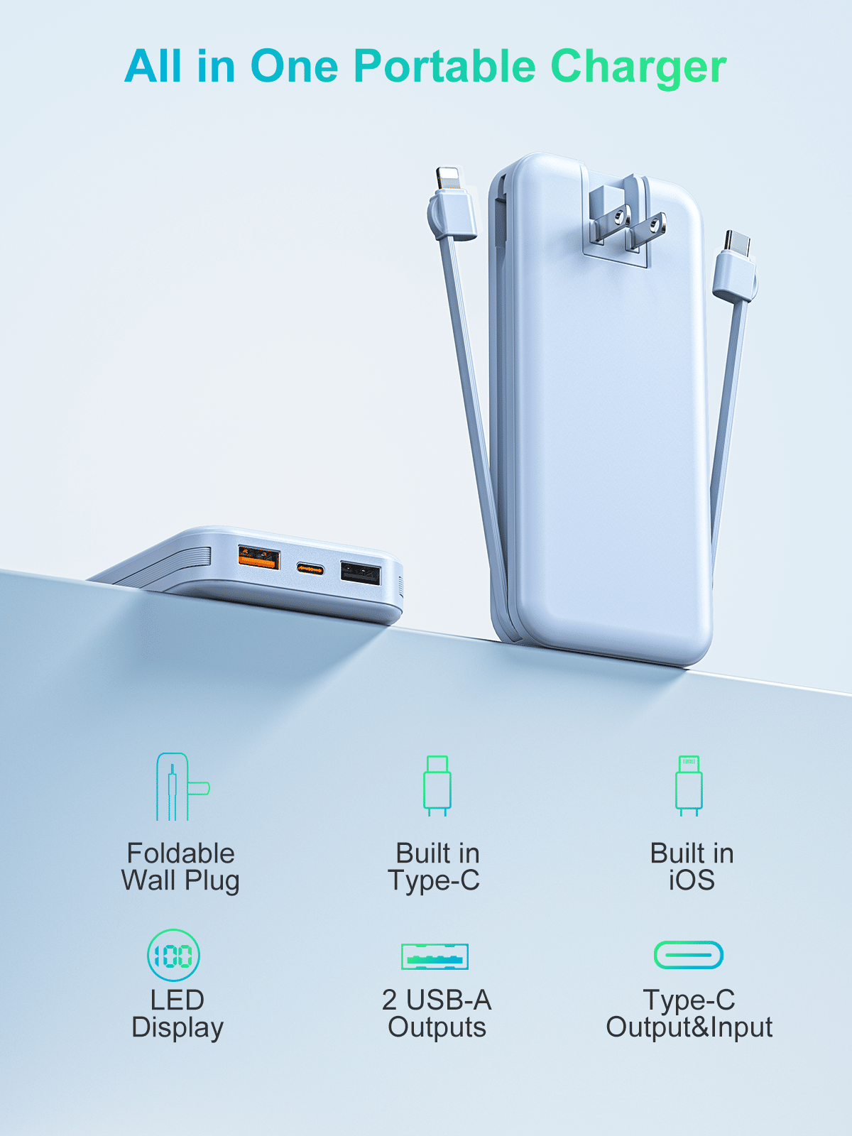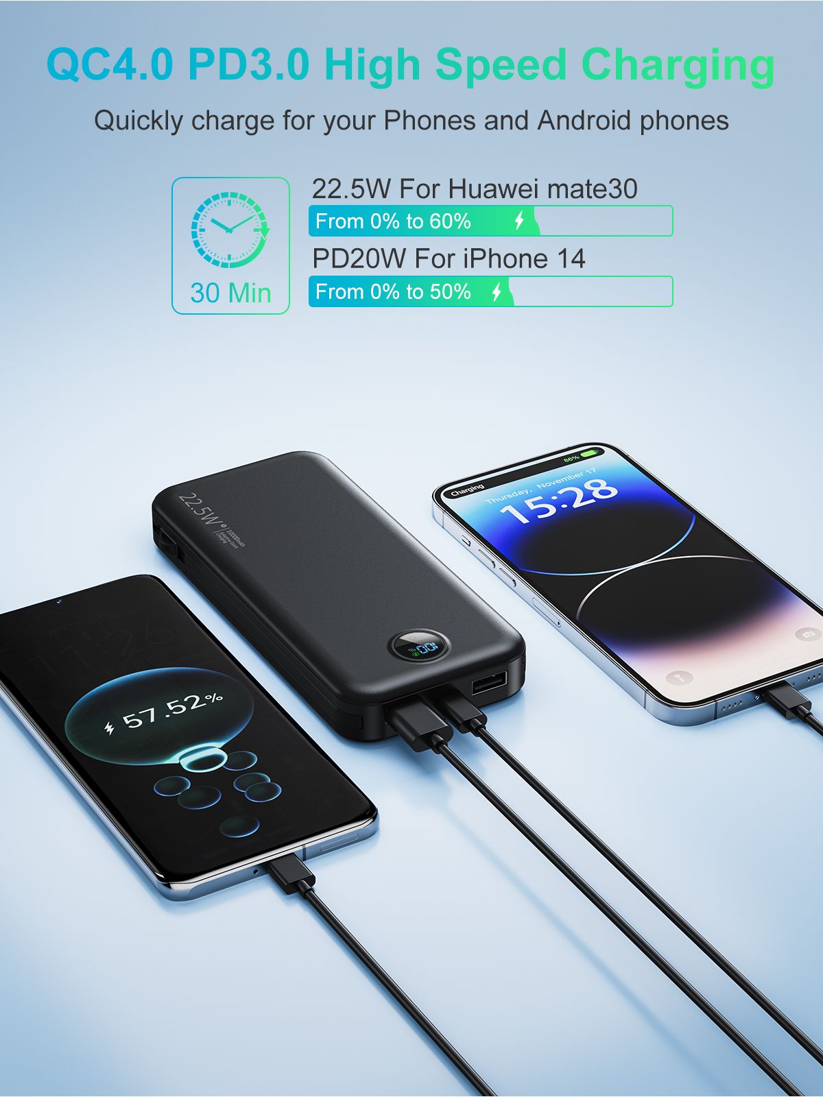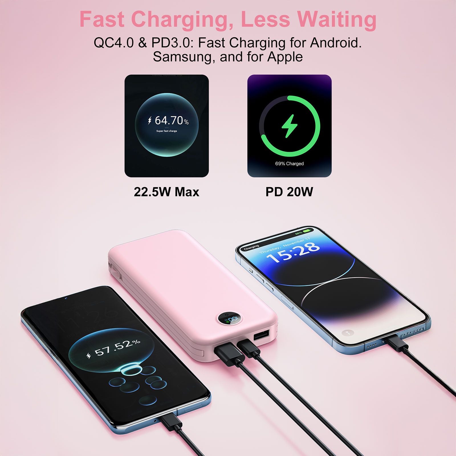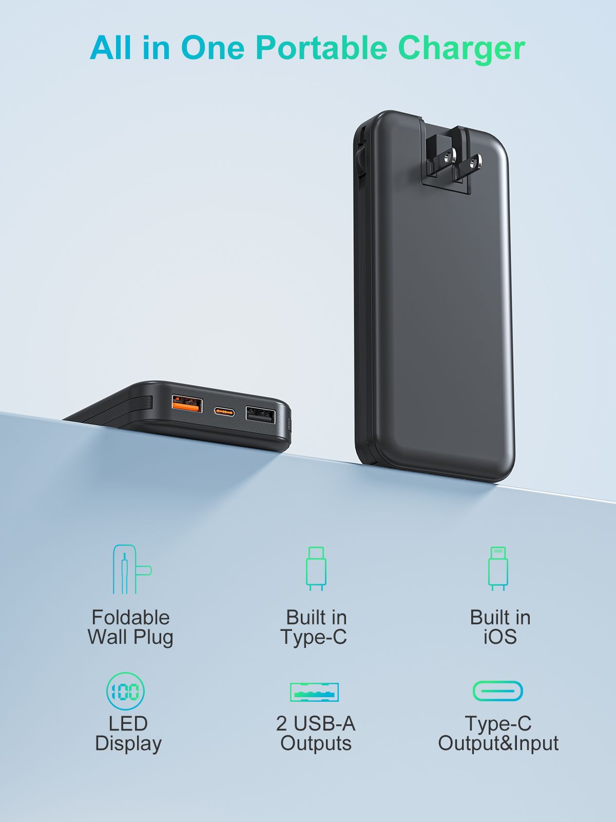 Portable Charger, 12000mAh USB C in Power Bank Fast Charging, LED Display External Battery Pack Phone Charger Compatible with iPhone