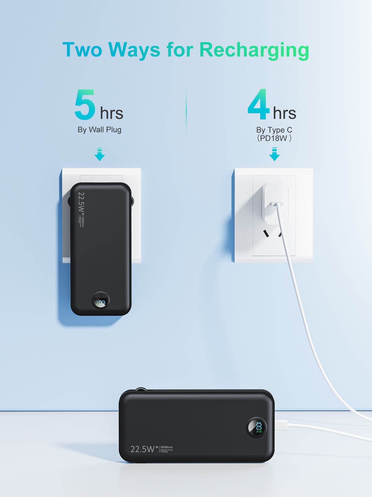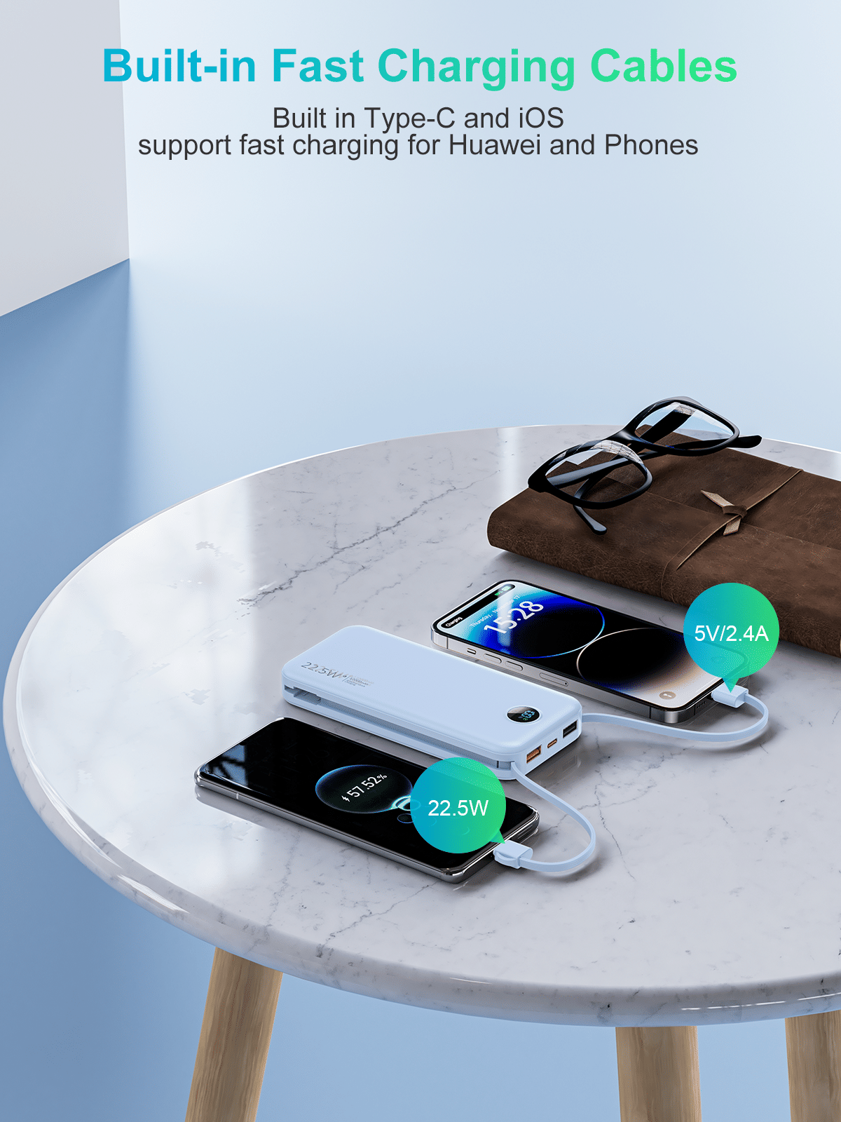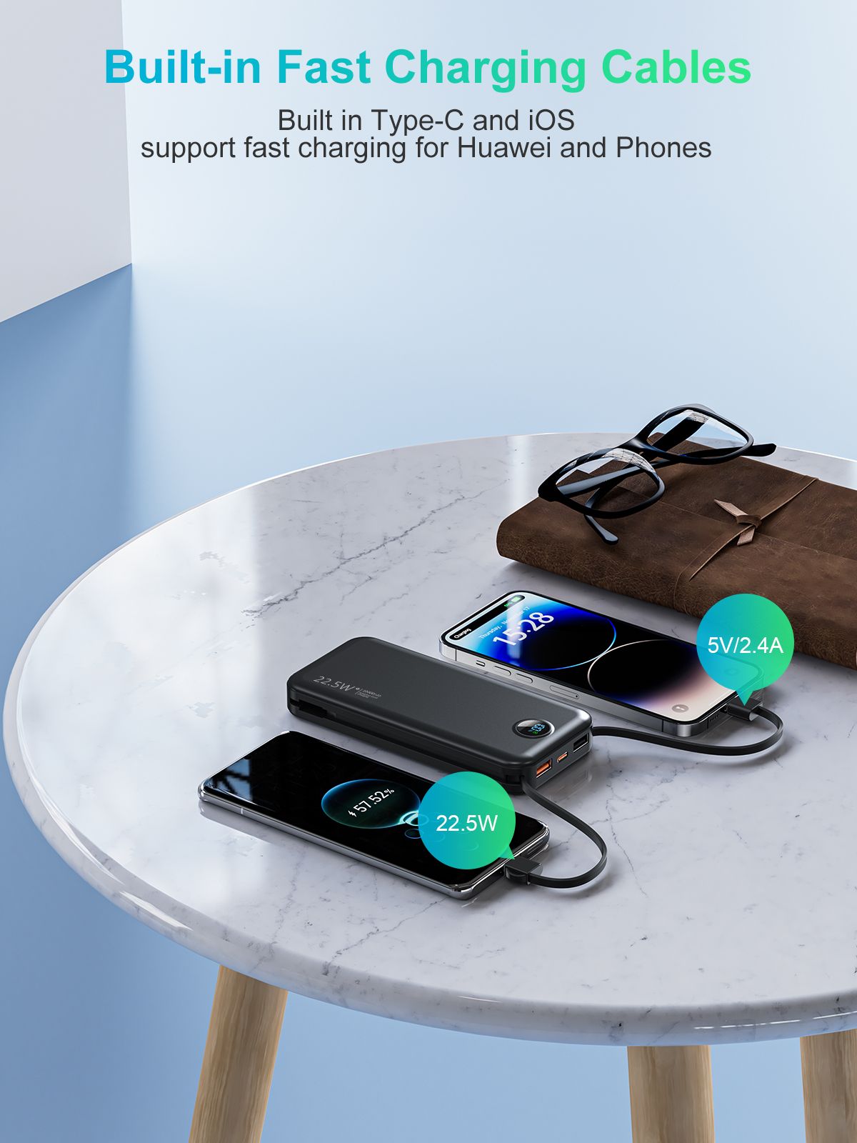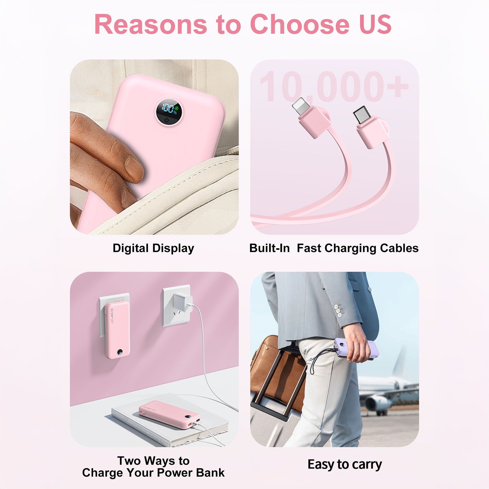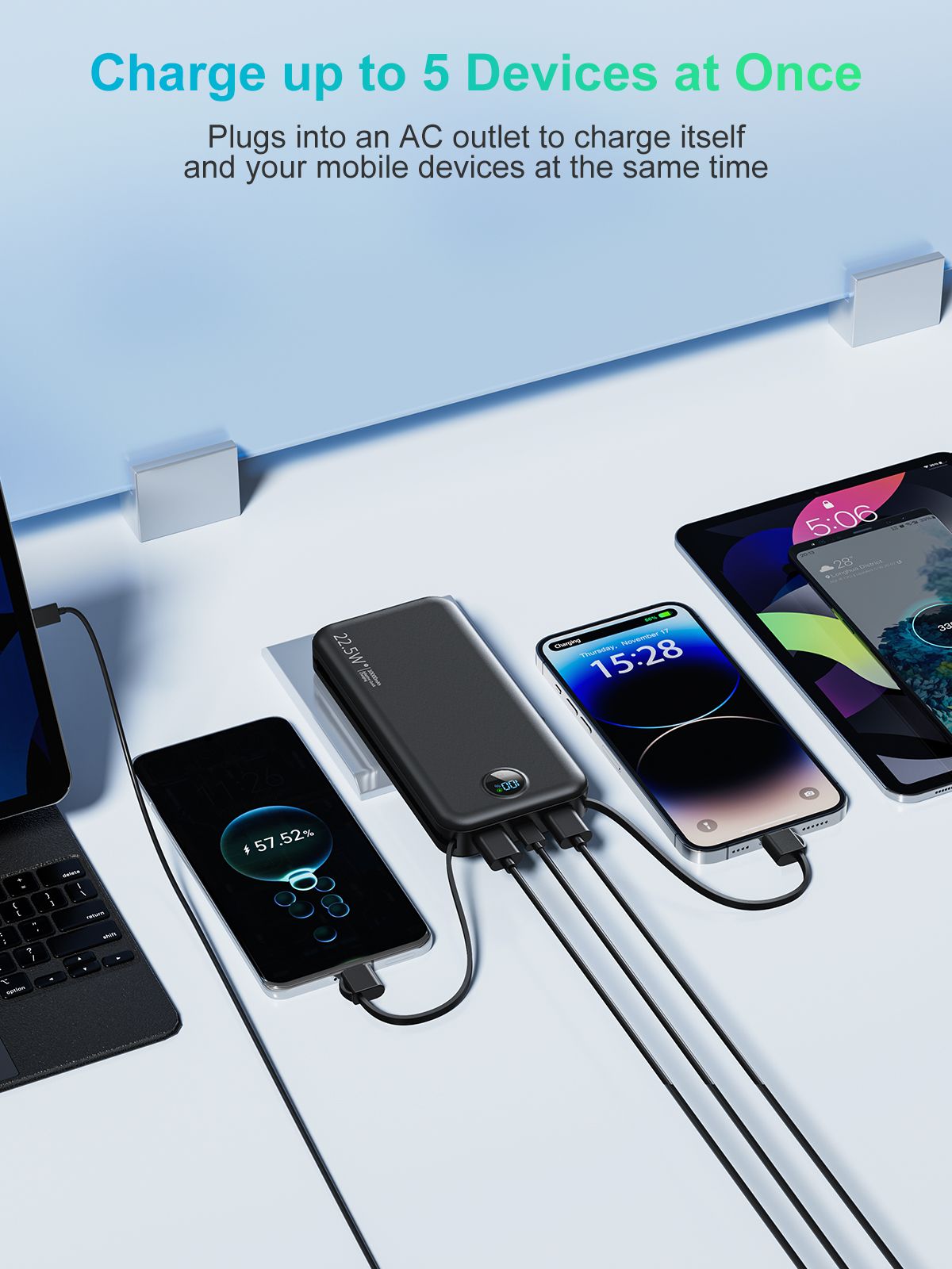 Portable Charger, 12000mAh USB C in Power Bank Fast Charging, LED Display External Battery Pack Phone Charger Compatible with iPhone