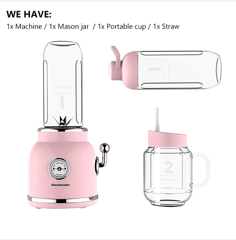 SKU: SBL-1708-PINK Portable Ithie Blender Vintage trendy fashion juicer, milk shake and smoothie Mix Mini crusher with 20.3 oz Travel mug and lid 6 sharp blades without BPA, Pink Home Food Blender / other kitchen utensils