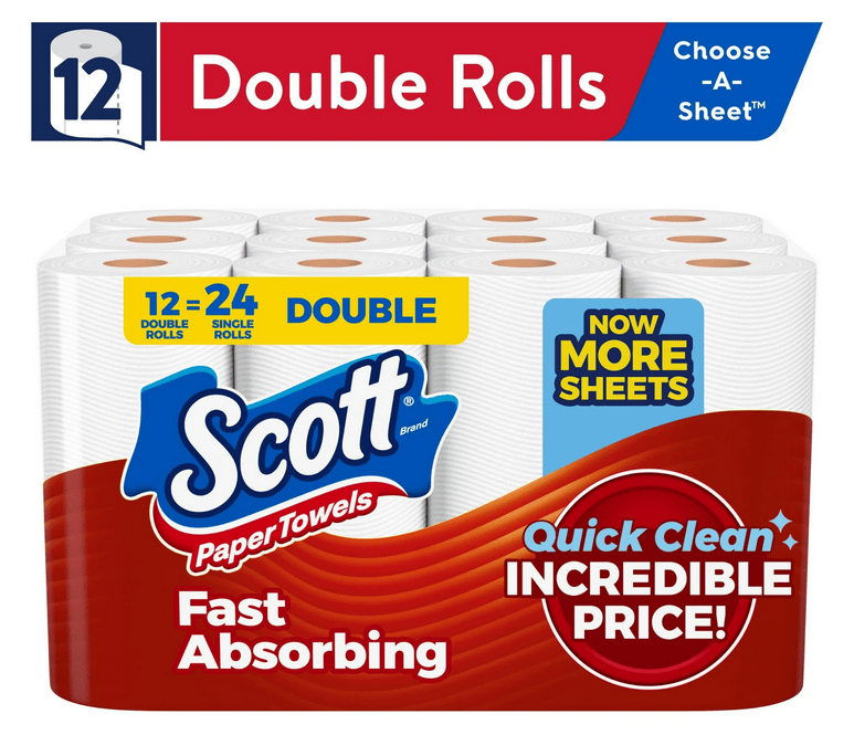 Scott Paper Towels, Choose-A-Sheet, 12 Double Rolls