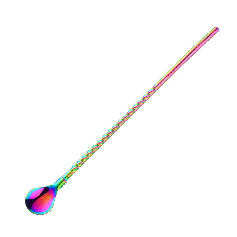 Stainless Steel Threaded Long Handle Straw Spoon Integrated Dual-purpose