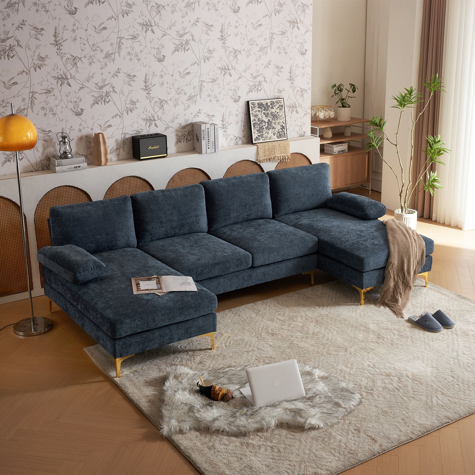 Are you looking for a comfortable sofa for your family? If so,this U-Shaped 4-Seat Indoor Modular Sofa is highly recommended to you. This modern sofa can provide ample seating when guests are over, perfect for a small space and easy to lay down on for a nap. Small space reversible sectional sofa. The cushions you sit on are nice and firm. You'll never have to worry about sinking in. The more you sit in it the better. So what are you waiting for? Don't hesitate, it's worth buying!