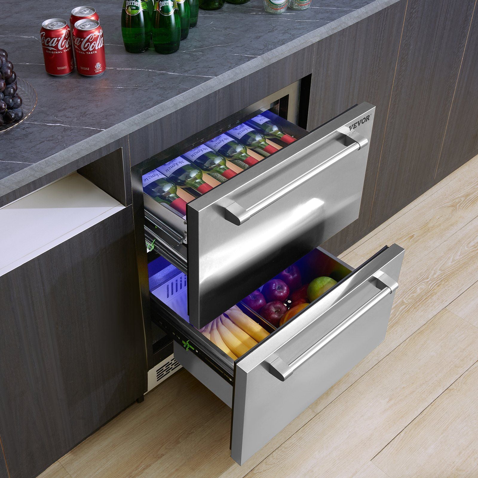 The undercounter drawer fridge is constructed from stainless steel with a protective layer to resist damage. And the freezer drawer is ideal for outdoor use due to its IPX4 waterproof rating. The damping sliding rails make it easy to open the drawers and ensure their long-term functionality.