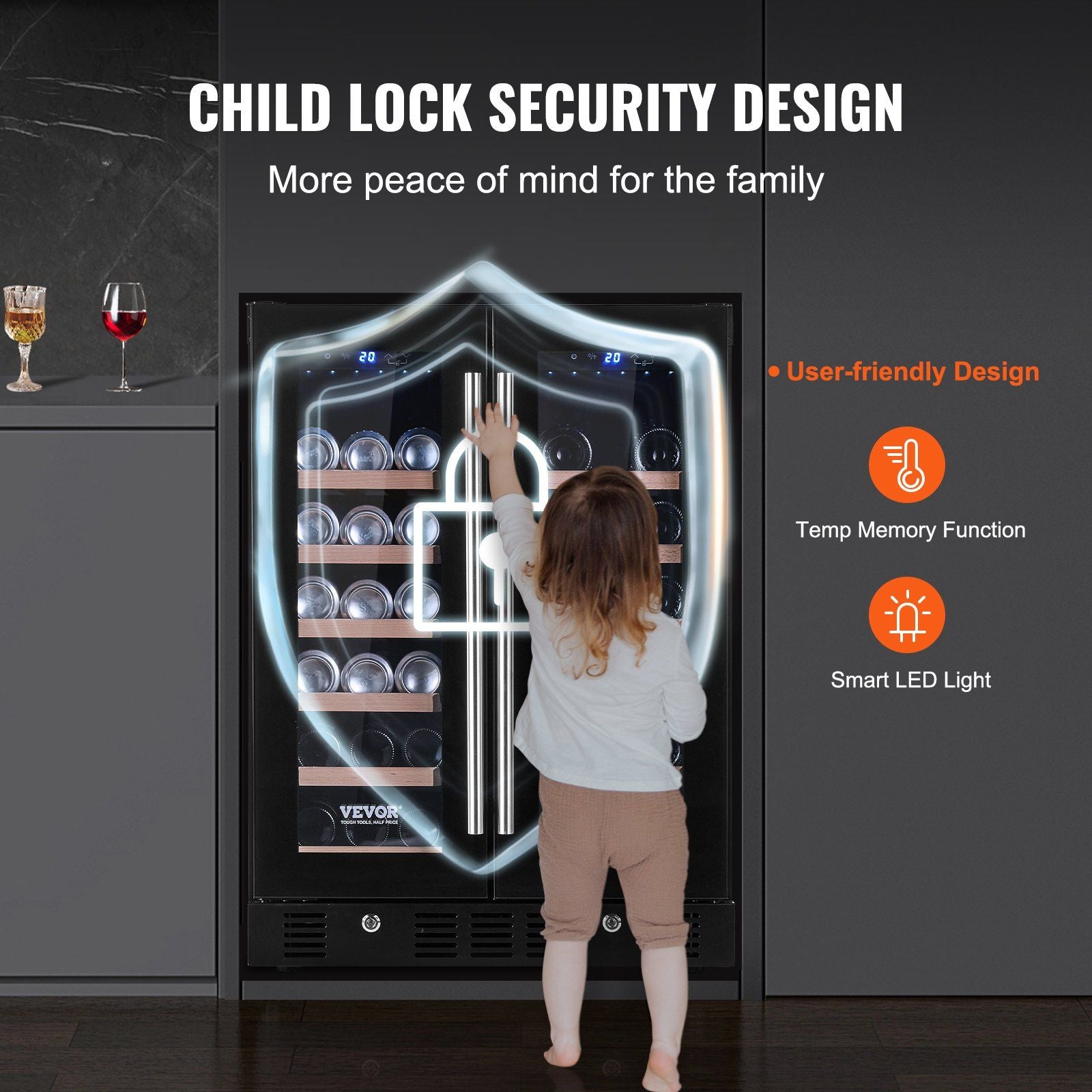 Security & Versatile: The wine refrigerator is equipped with child lock function, protecting the safety of your family while also protecting your precious wine. Not only can it store treasured wines such as red wine, but also beverages, fruits and other food that need to be refrigerated.