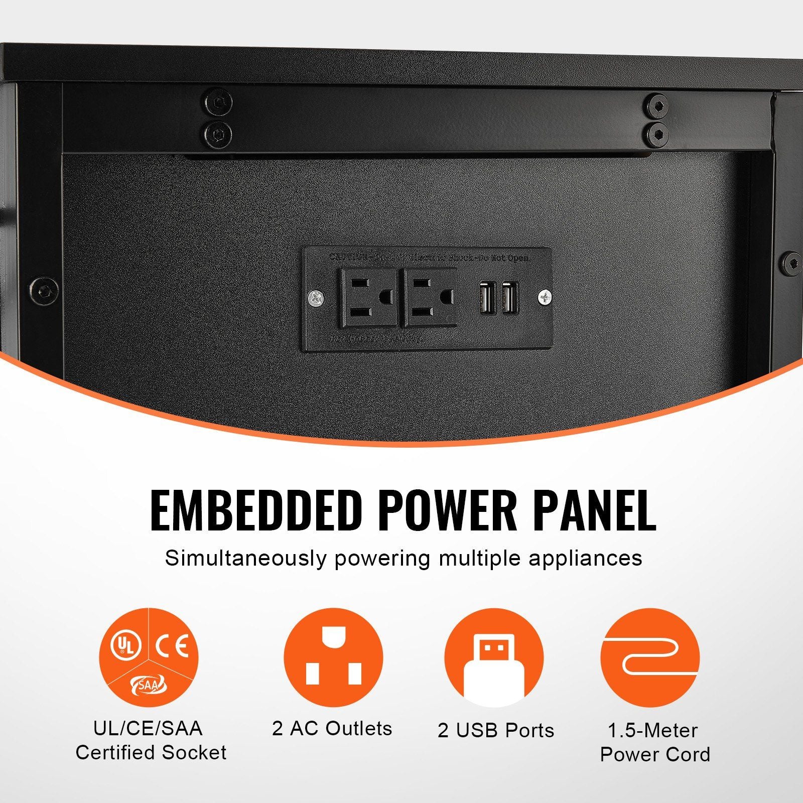 Our fish stand features a built-in power outlet with 2 AC and 2 USB ports. It allows for the electrical operation of various aquarium devices such as aquarium lights, heaters, air pumps, and filters.