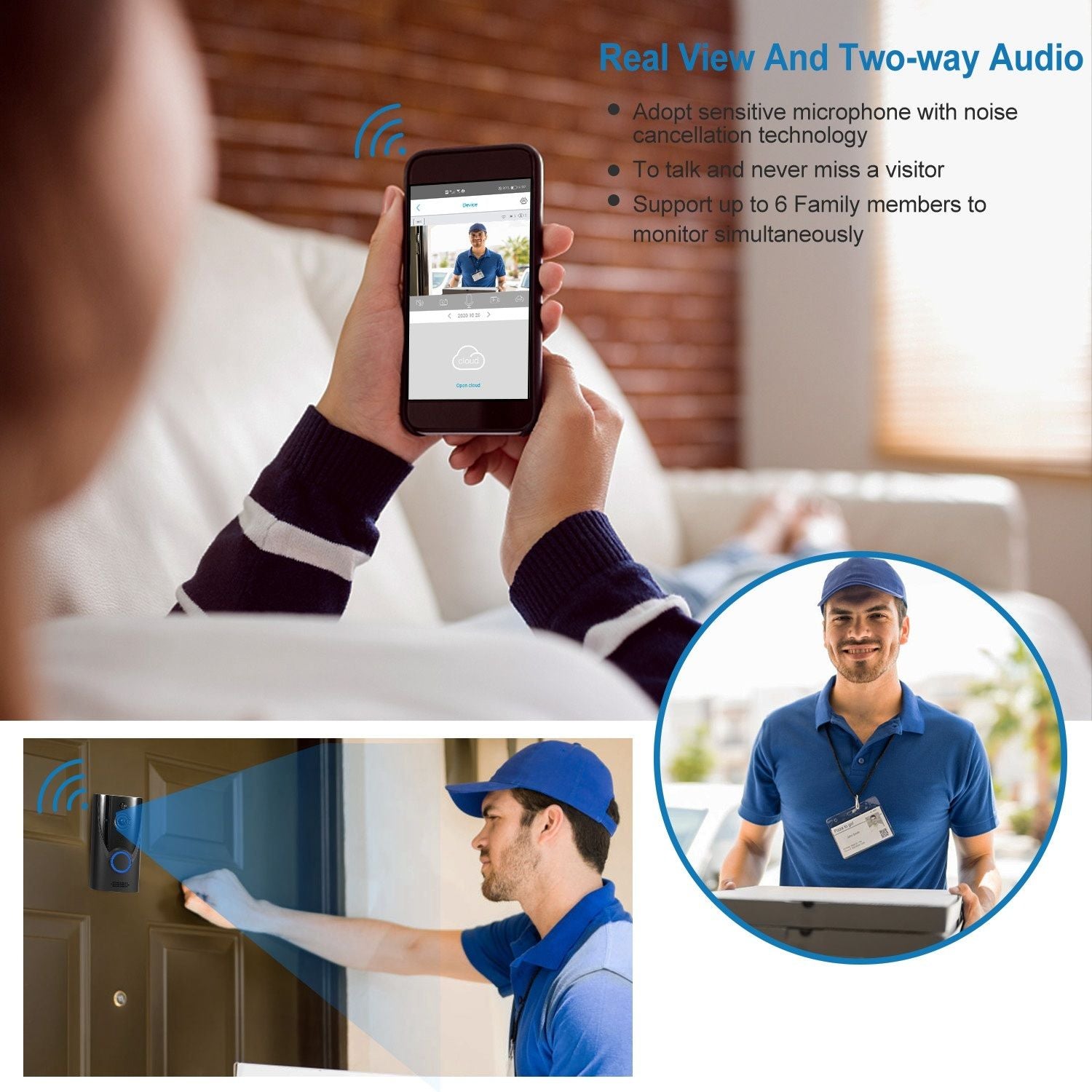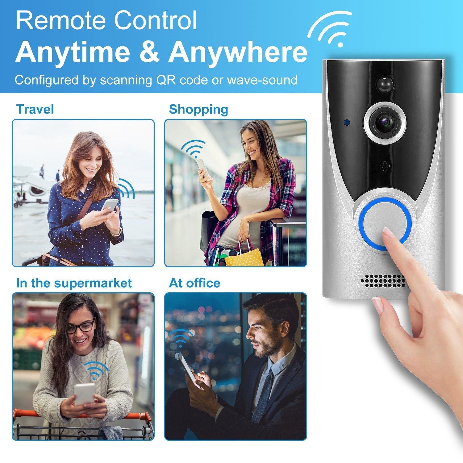 **Widely Used*:The reliable WiFi connectivity(2.4G WiFi Only) to access your smart doorbell via the App on your iOS or Android mobile devices and easily achieve P2P(Point to Point) monitor or view by smartphone. Can be widely used at front door; back door; garage in home; office; apartment; etc..