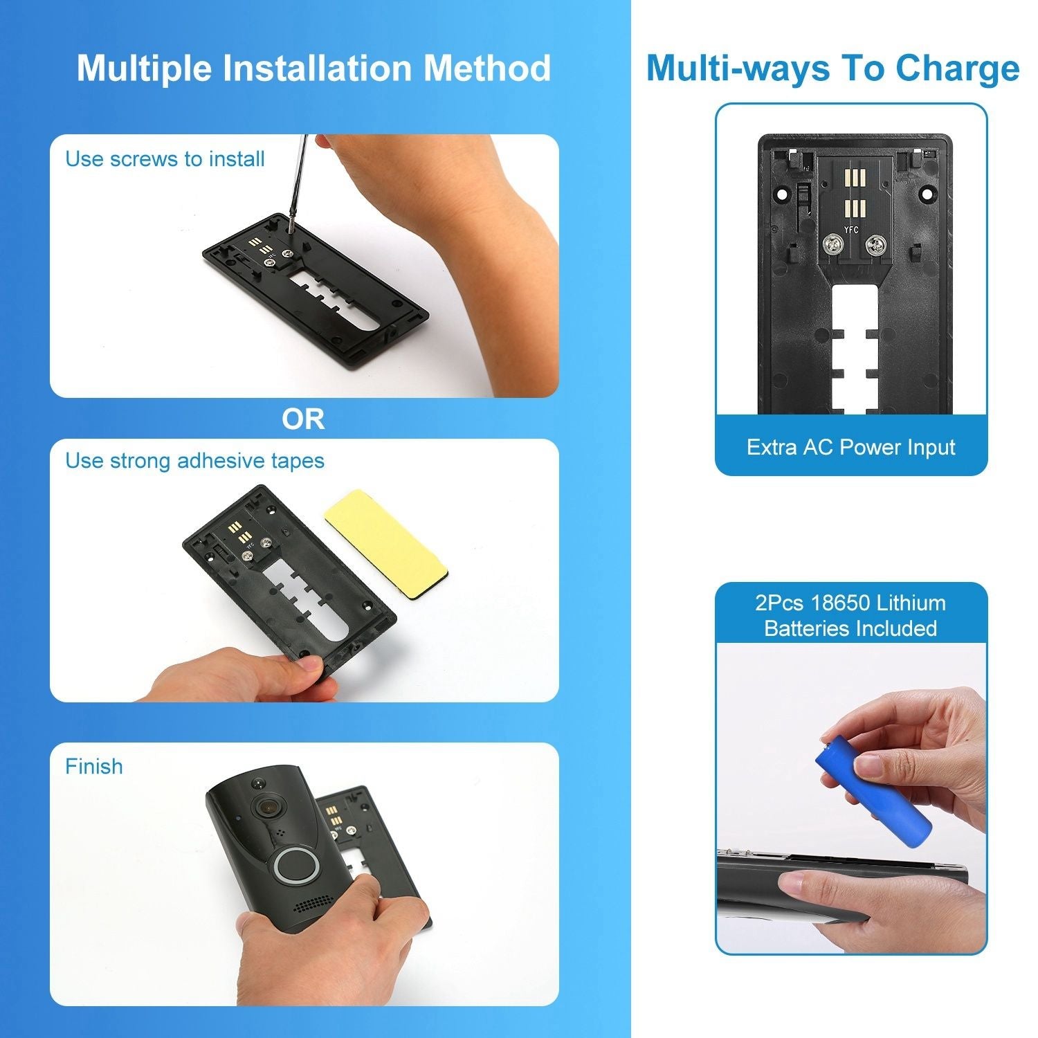 **Easy Installation*:Download the UBOX APP; then connects it with your doorbell; no wires and cables are required. Can be mounted to door via included strong adhesive tape or included screws.